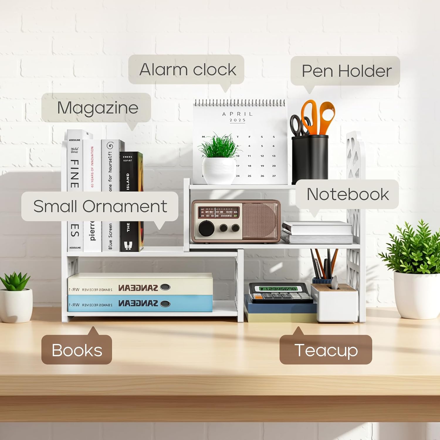 Desktop Shelves, Adjustable White Bookshelf Desktop