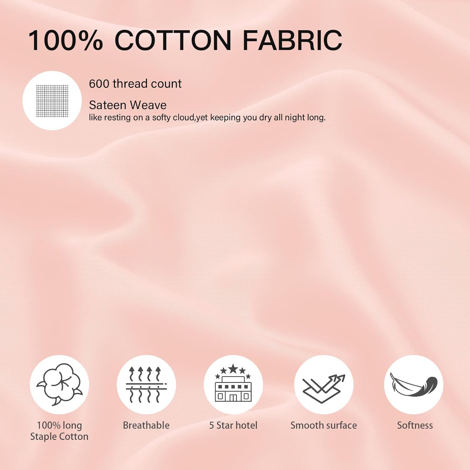 Cotton Pillowcase Set: The pillow case sets are woven from 100% cotton, 600 thread count, the fabric is breathable and soft. Pillowcases are items that are close to the skin of our face, with our hypoallergenic cotton pillowcases, sleep soundly and enjoy a restful night’s sleep.