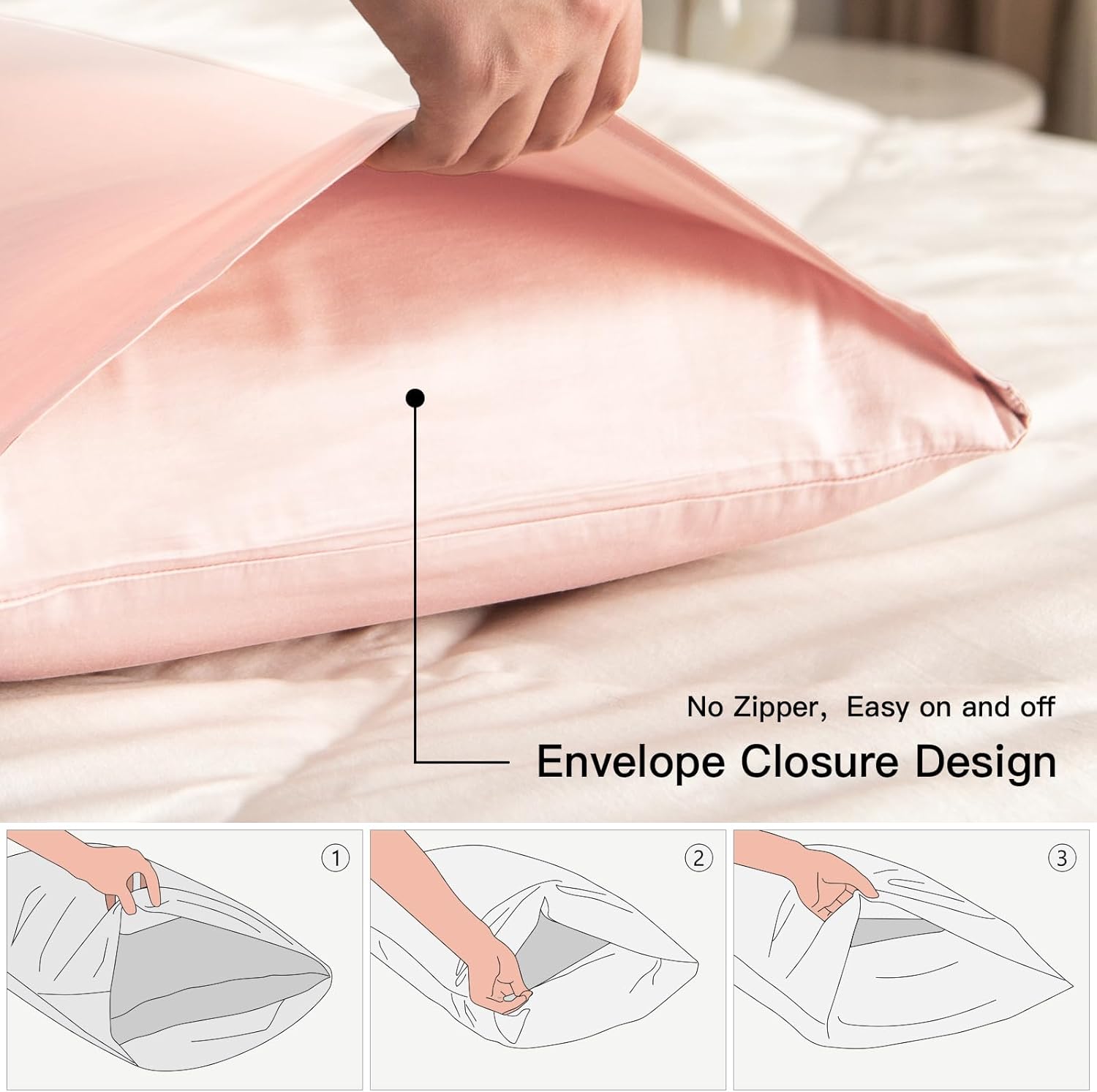 100% Cotton Standard Pillowcases Set of 2, Deep Dream 600 Thread Count Pillow Cases, 20×26 Inches, Super Soft and Breathable Envelope Closure (Pink)