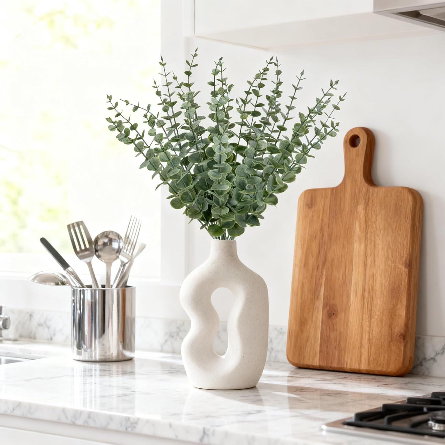 Sufficient Quantity for Diverse Decoration Needs:The set includes 25 artificial eucalyptus stems with ample quantity. They can be used alone for vase arrangement or freely combined with other artificial flowers to create floral designs. Whether for small-scale desktop decoration or large-area scene layout, it can be easily achieved without additional purchase.