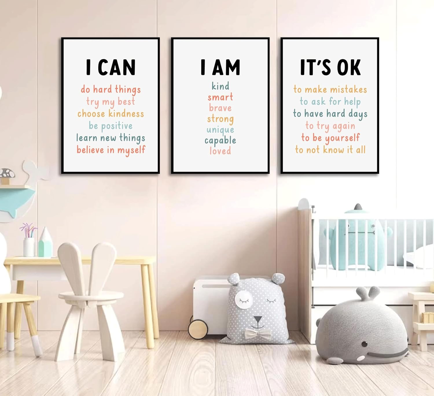 Designed to uplift and encourage, these prints are excellent for school rooms, playrooms, and youngsters’ rooms, making a nurturing setting that encourages self-belief and development.