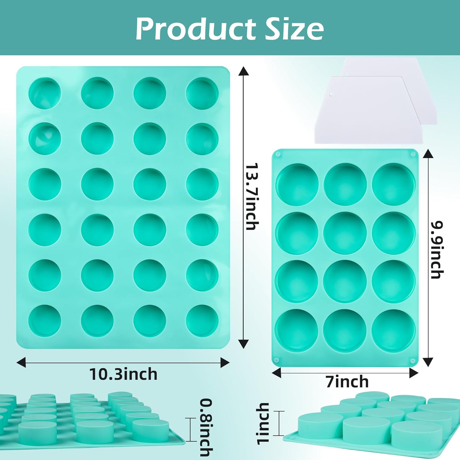 • Two Distinct Sizes: Includes one 24-cavity mold and one 12-cavity mold, offering versatility for small batches or larger productions depending on your needs.