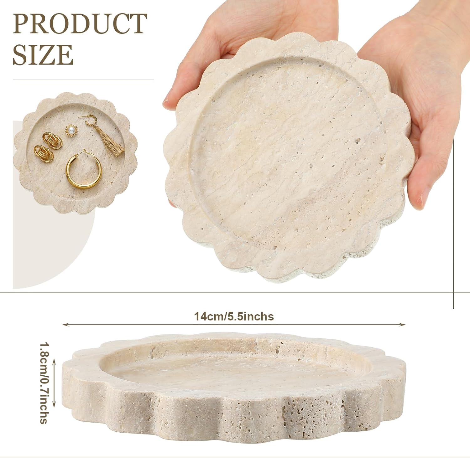 Be the first to review “5.5 Inch Small Travertine Scallop Edge Stone Tray Decorative Marble Jewelry Dish Tray Gift(Round)”