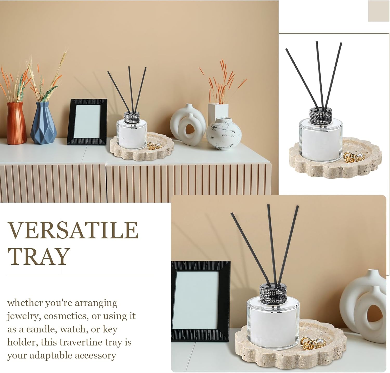 Versatile Tray: whether or not you are arranging jewellery, cosmetics, or utilizing it as a candle, watch, or key holder, this travertine tray is your adaptable accent; It additionally serves completely as a fragrance tray, making it a mandatory addition to your toilet, kitchen sink, entryway desk, or nightstand