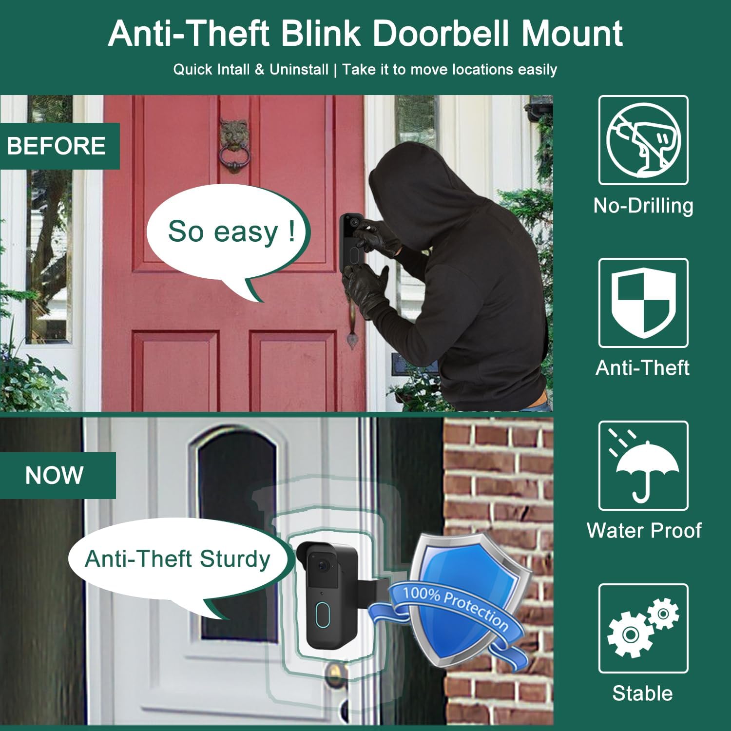 Upgraded Anti-Theft Design: The Doorbell Mount is Anti-Theft design ,which maintain your video doorbell from being stolen.It is appropriate with Blink Video Doorbell, good for residence, workplace, house.