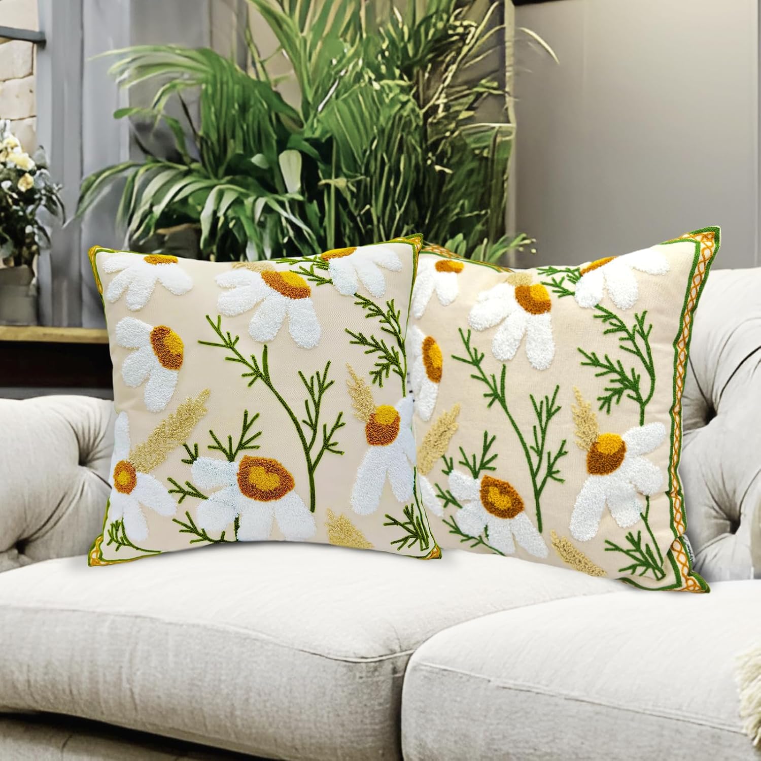 Be the first to review “Alysheer Floral Embroidered Fall Decorative Throw Pillow Covers 18″x 18″ Set of 2, Farmhouse Daisy Flowers Patterned Canvas Cushion Cases for Couch Bed Living Room Decor”