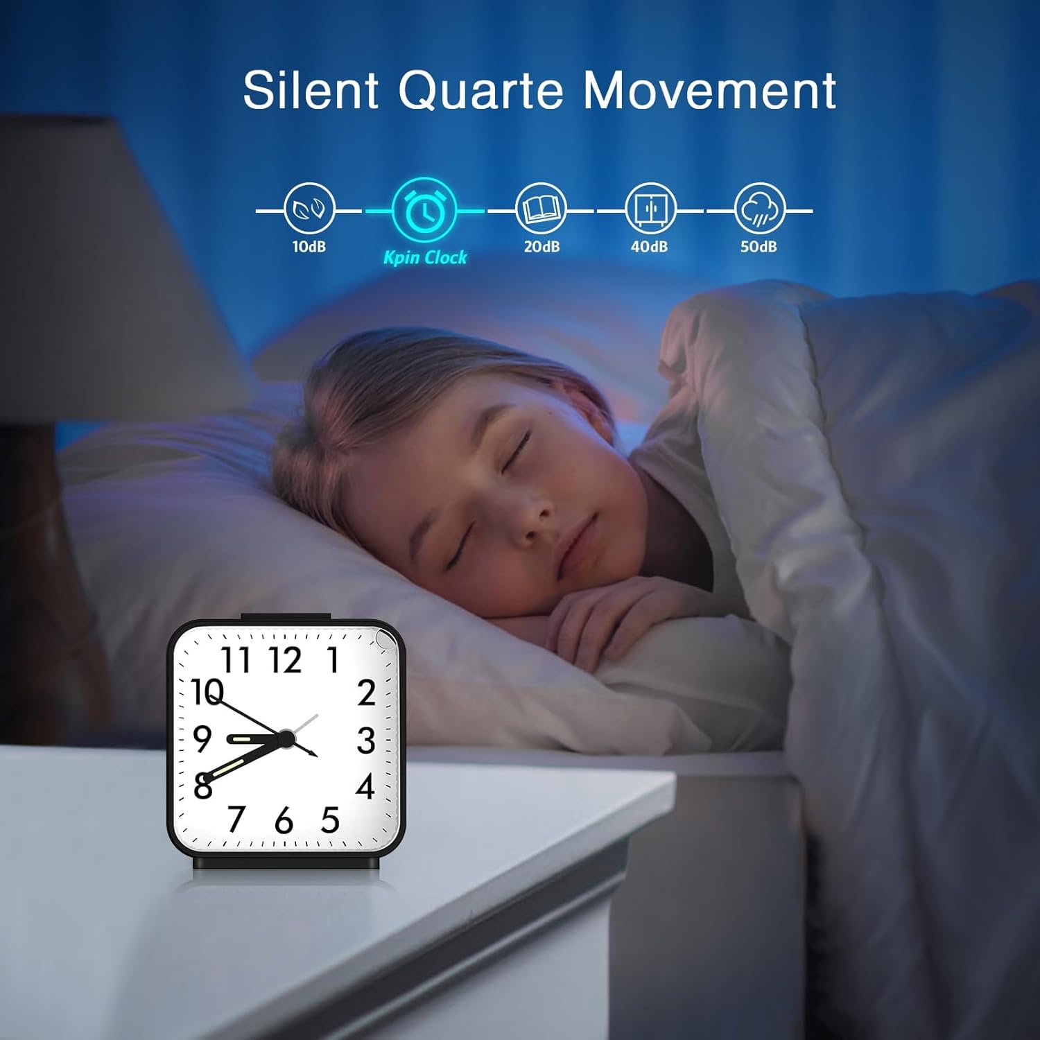 This analog alarm clock is designed for those who value quiet mornings and undisturbed sleep. Featuring a silent quartz movement that operates without ticking, it ensures peaceful timekeeping whether placed in a bedroom, office, or shared living space. The compact dimensions—just 3 inches by 3 inches by 1.5 inches—make it ideal for small nightstands, crowded desks, or minimalist interiors. Despite its modest footprint, the clock delivers clear visibility with large numerals and luminous hands that remain legible even in low light. Powered entirely by batteries (not included), this clock eliminates the need for wall outlets while providing reliable performance for daily routines.