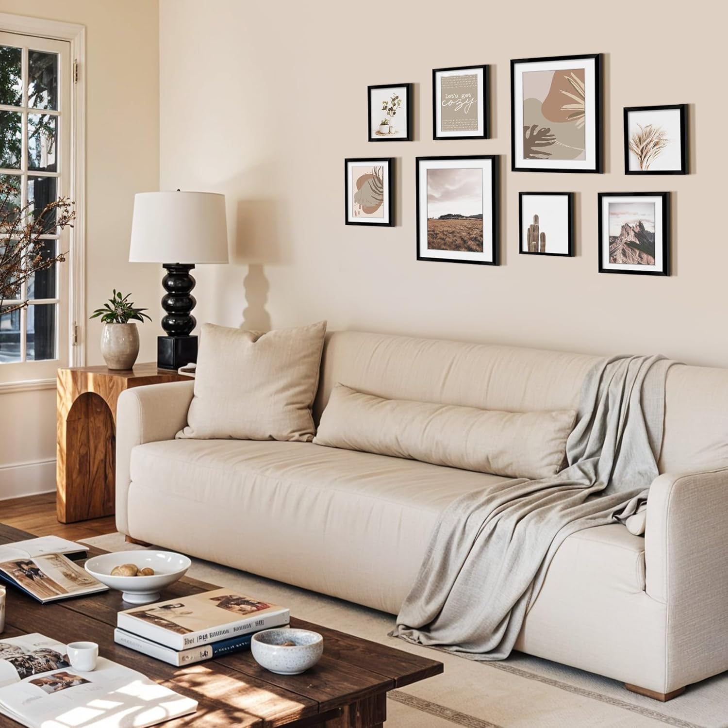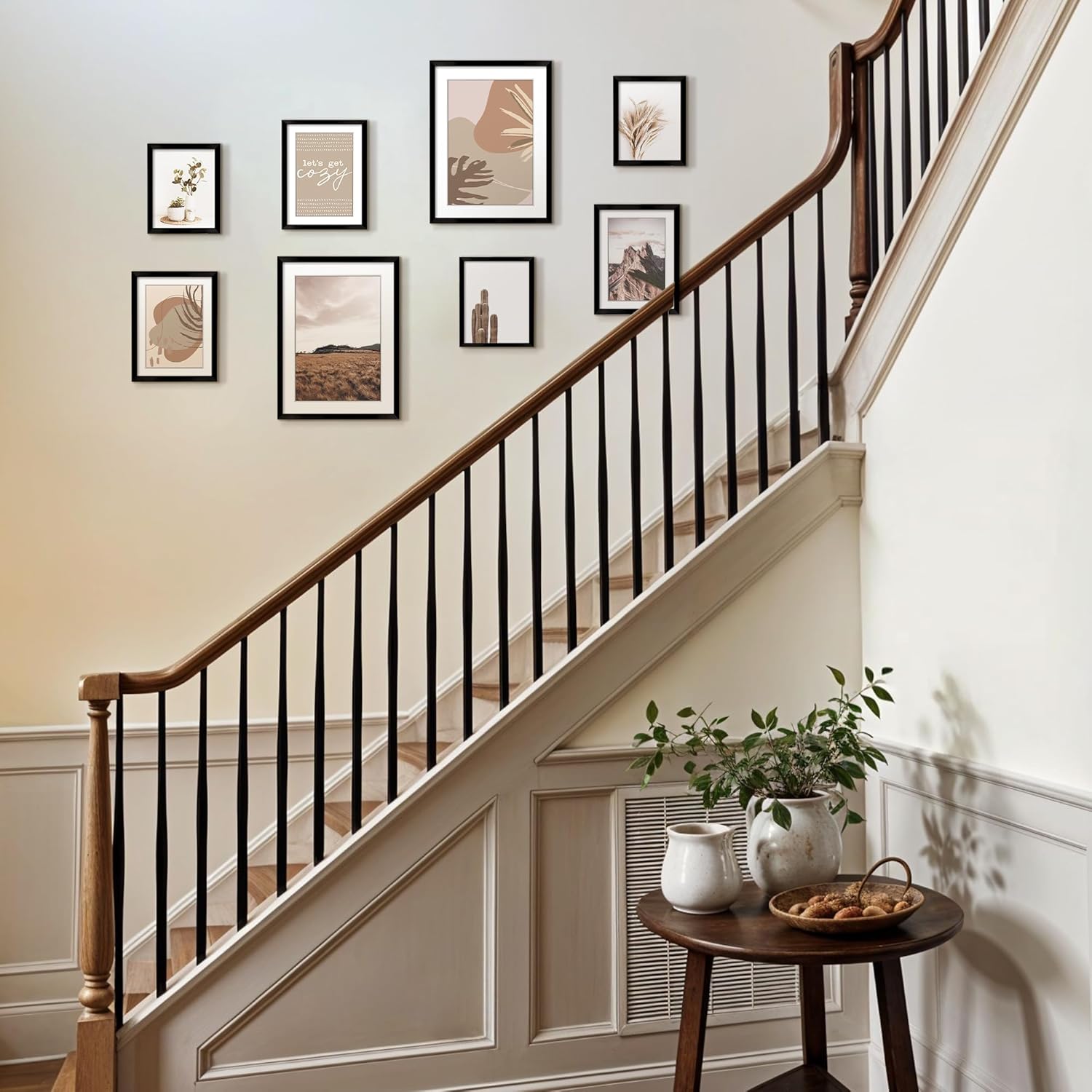 ArtbyHannah Gallery Wall Frame Set,Black Picture Frames Collage Wall Decor with Neutural Art for Living Room Stariway,8 Pack Assorted Size-11″x14″,8″x10″,6″x8″
