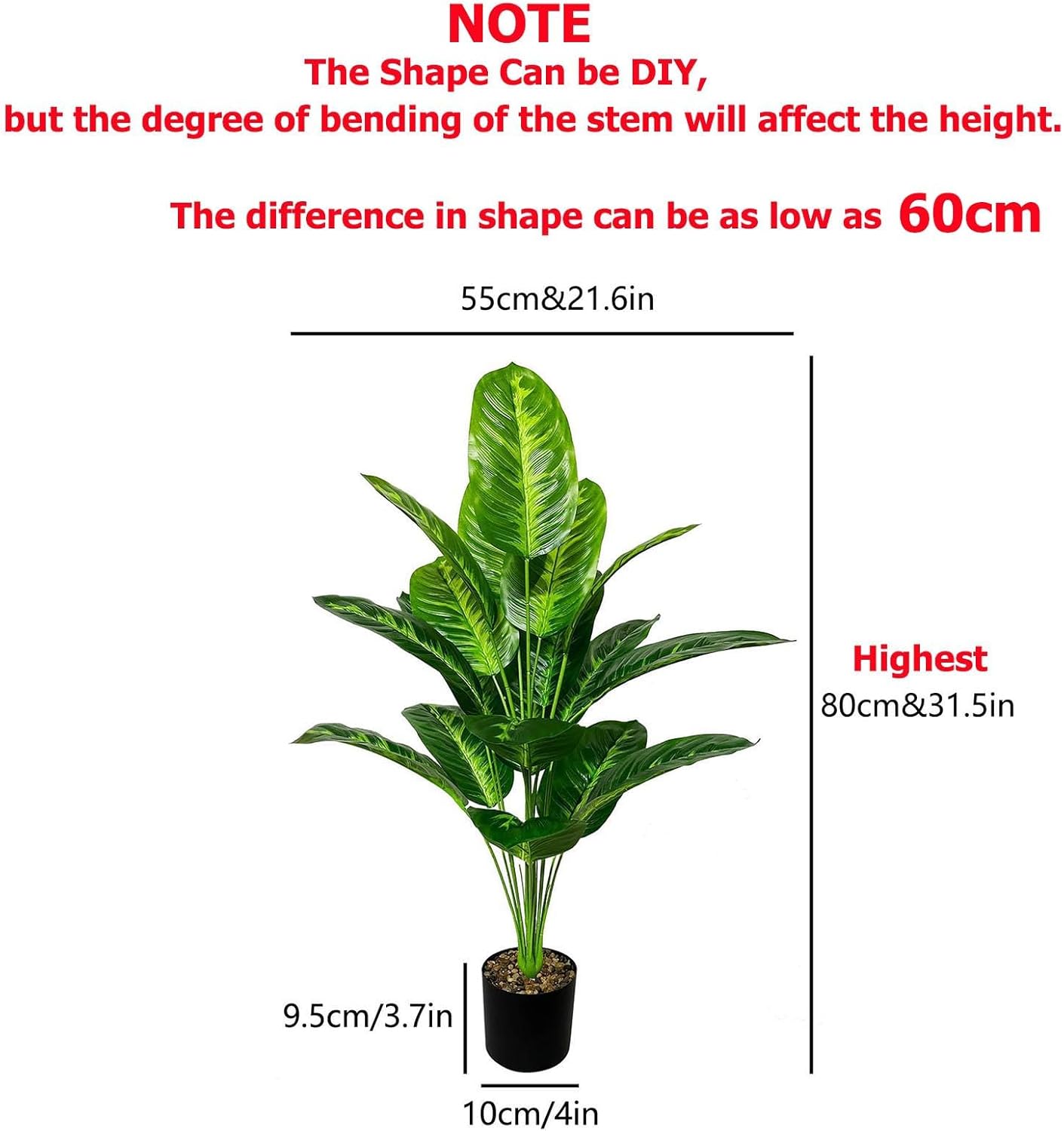 • Package Contents: 1 artificial banana tree with integrated stem and leaf assembly + 1 coordinating black plastic pot