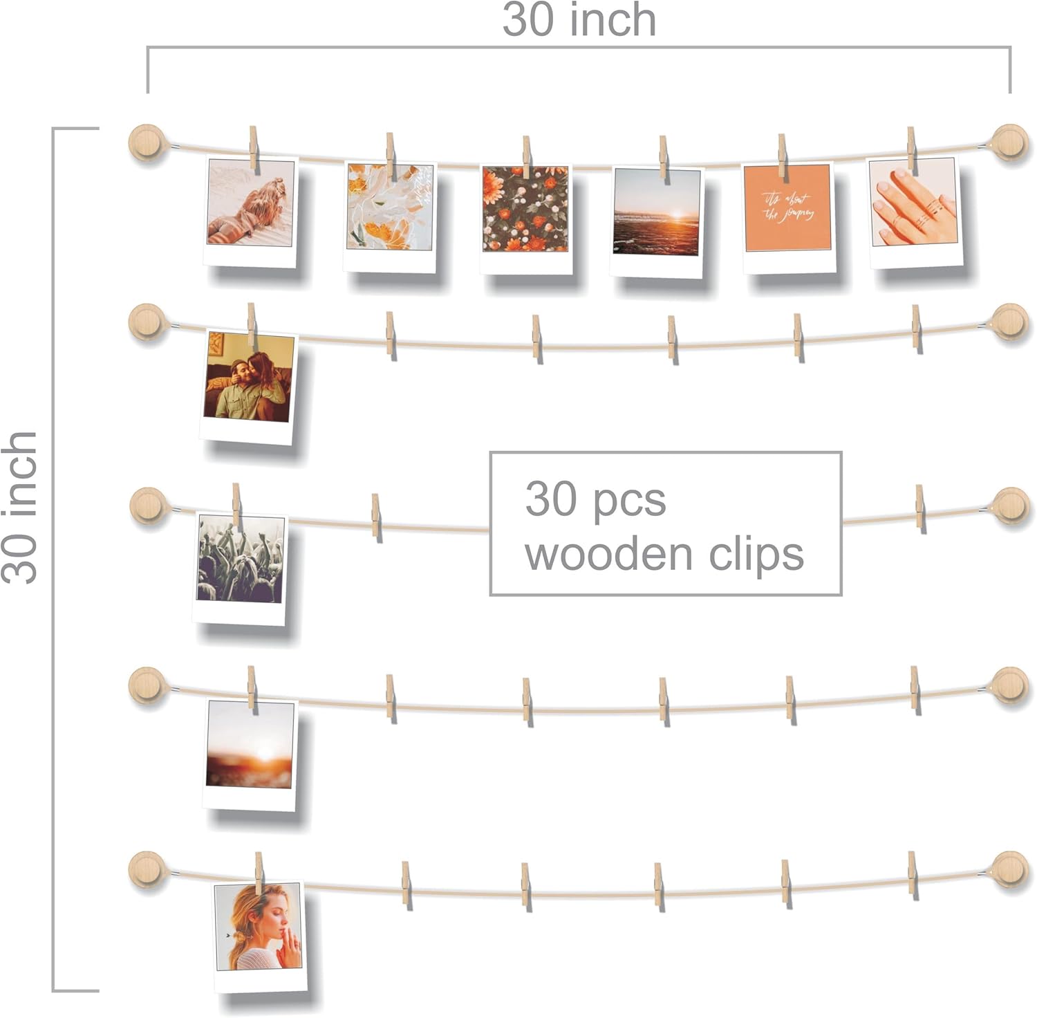 Be the first to review “BIZYAC Hanging Photo Display Room Wall Decor – Sculptural Picture Frames Collage – 5 Strings with 30 Clips – 3M Self Adhesive Hooks – No Holes Drilling – 30 x 30 inch”