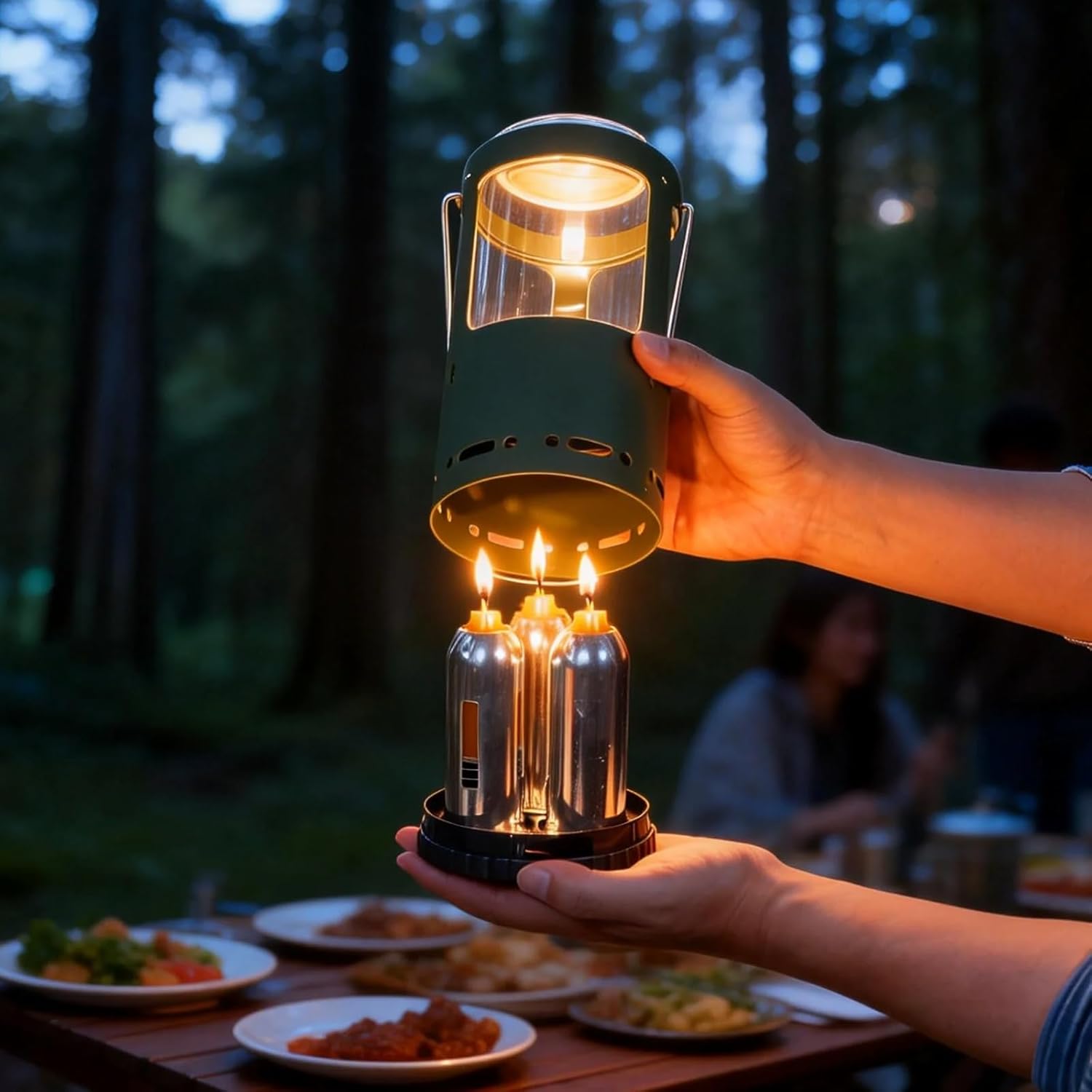Heat Shield Function: Features a built-in heat shield to warm small amounts of water or food—simply place a mug or small pot on top while enjoying steady ambient light