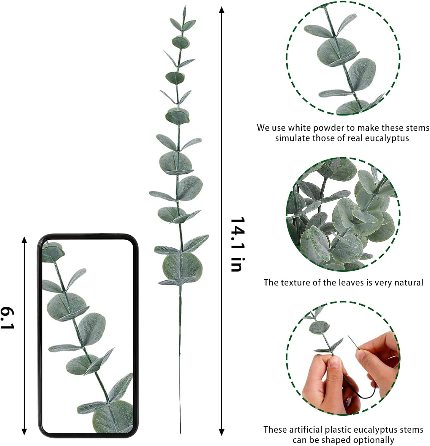 【Substance of eucalyptus branches】 These synthetic eucalyptus leaves are manufactured from plastic. The powder planting expertise is adopted to create a pure frosty inexperienced in leaves which supplies your house a pure look.