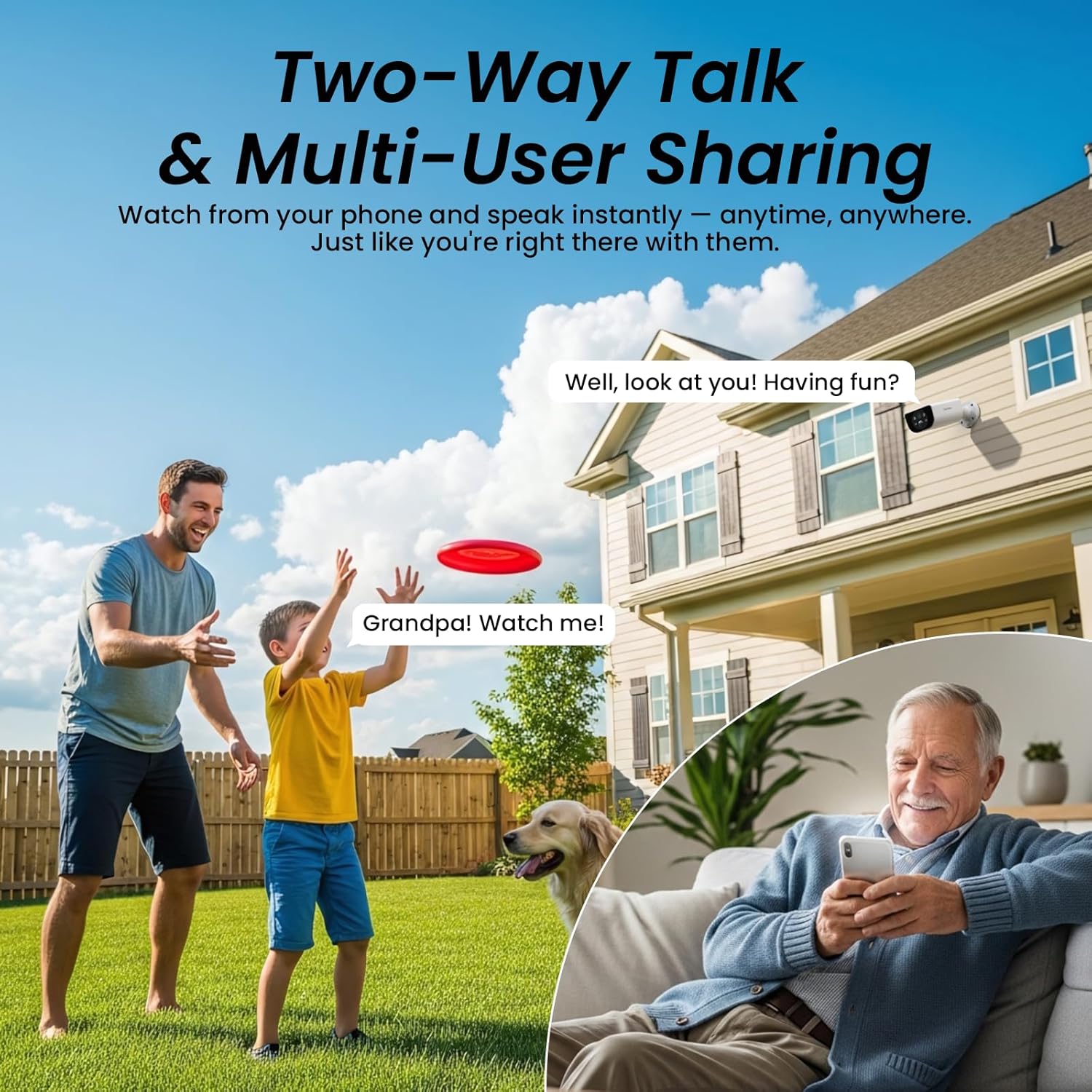 Your Unblinking Guardian, Through Every Season: With an IP65 rating, this outdoor camera wireless is fully protected against dust, rain, and harsh weather, guaranteeing year-round operation. Also the security camera outdoor allows you to securely grant access to family members, with customizable live viewing and alert permissions for each person. It transforms protection into a connected experience, keeping your home secure and your loved ones involved, no matter the distance.
