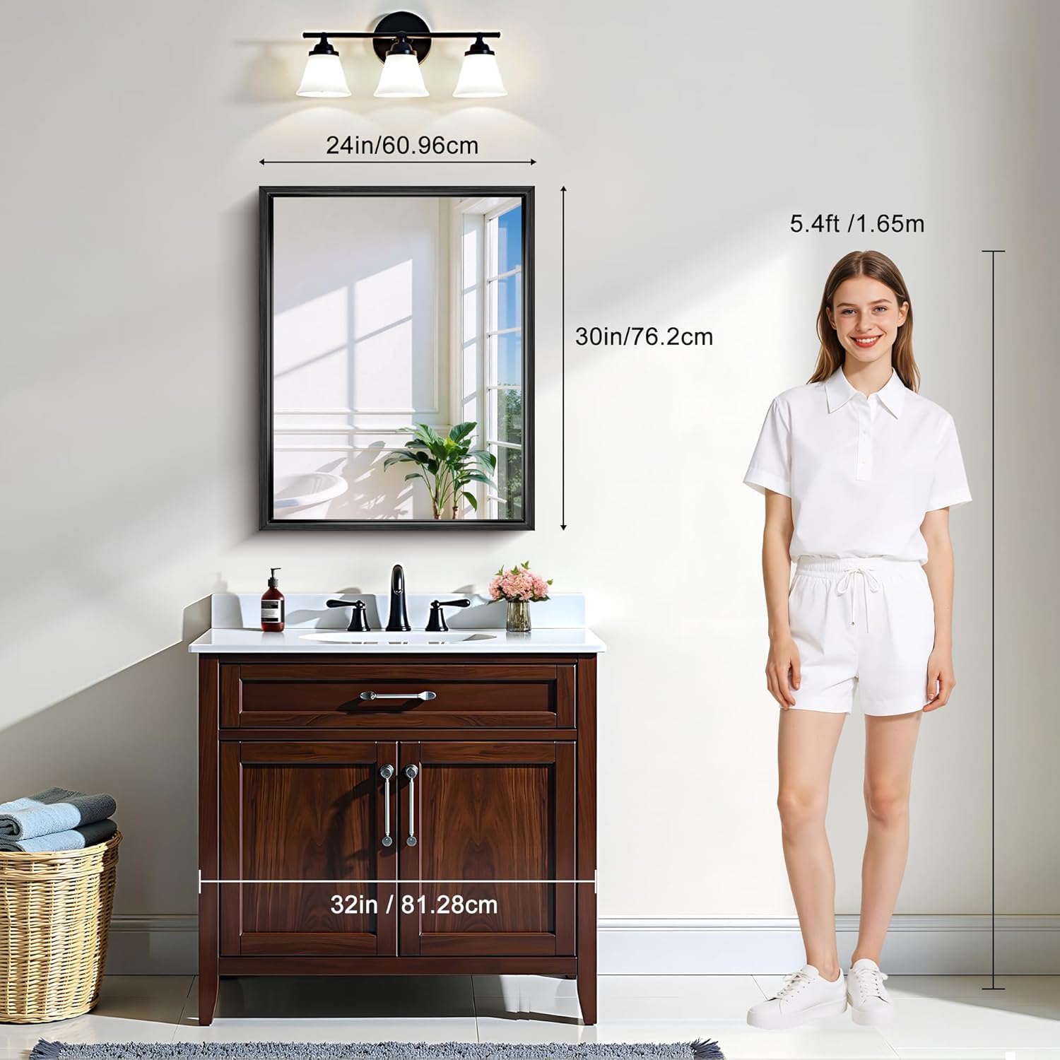 Crystal-Clear Confidence: Inside the 30 by 24 frame, premium shatterproof float glass delivers a flawless, 1:1 high-definition reflection—no distortion, no dark spots, no oxidation. Day or night, any lighting, you’ll see yourself exactly as you are with this mirror—crisp, clear, and confident.