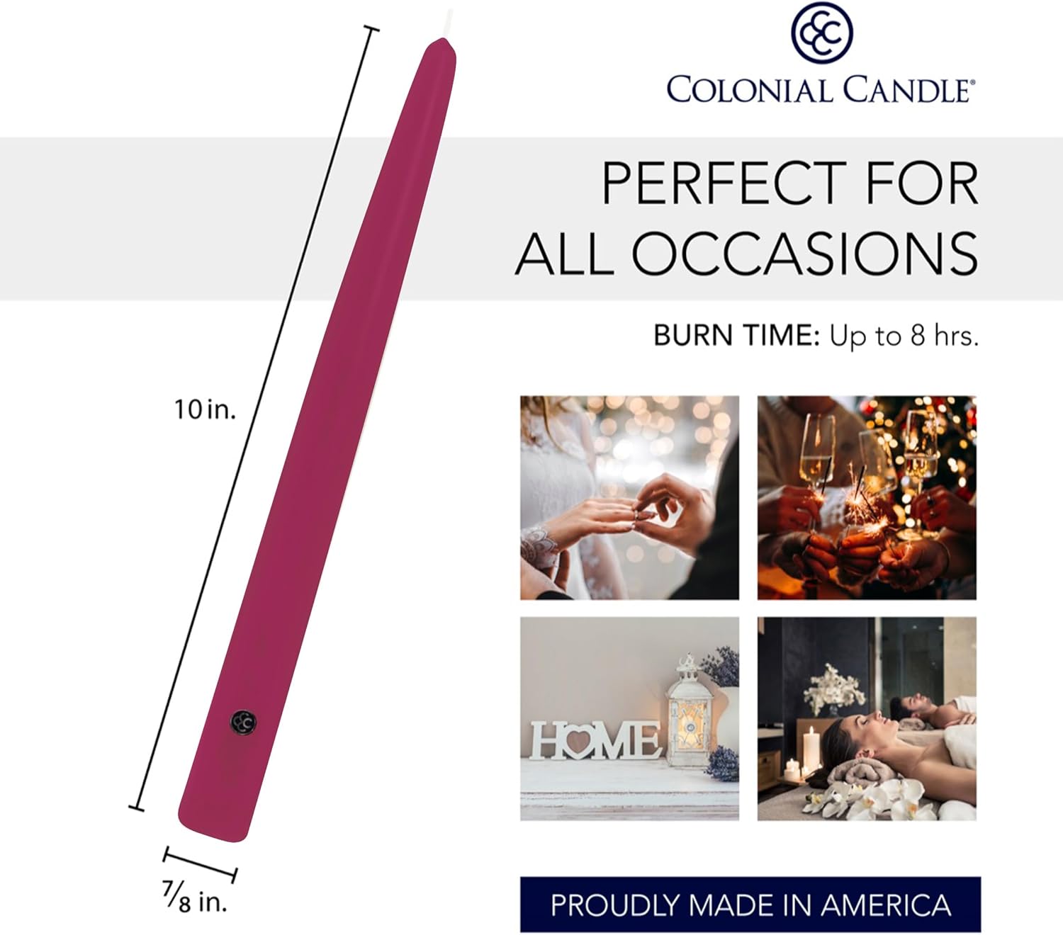 Colonial Candle Unscented Taper Candle, Handipt Collection, Mulberry, 10 in, Pack of 12 – Up to 8 Hours Burn