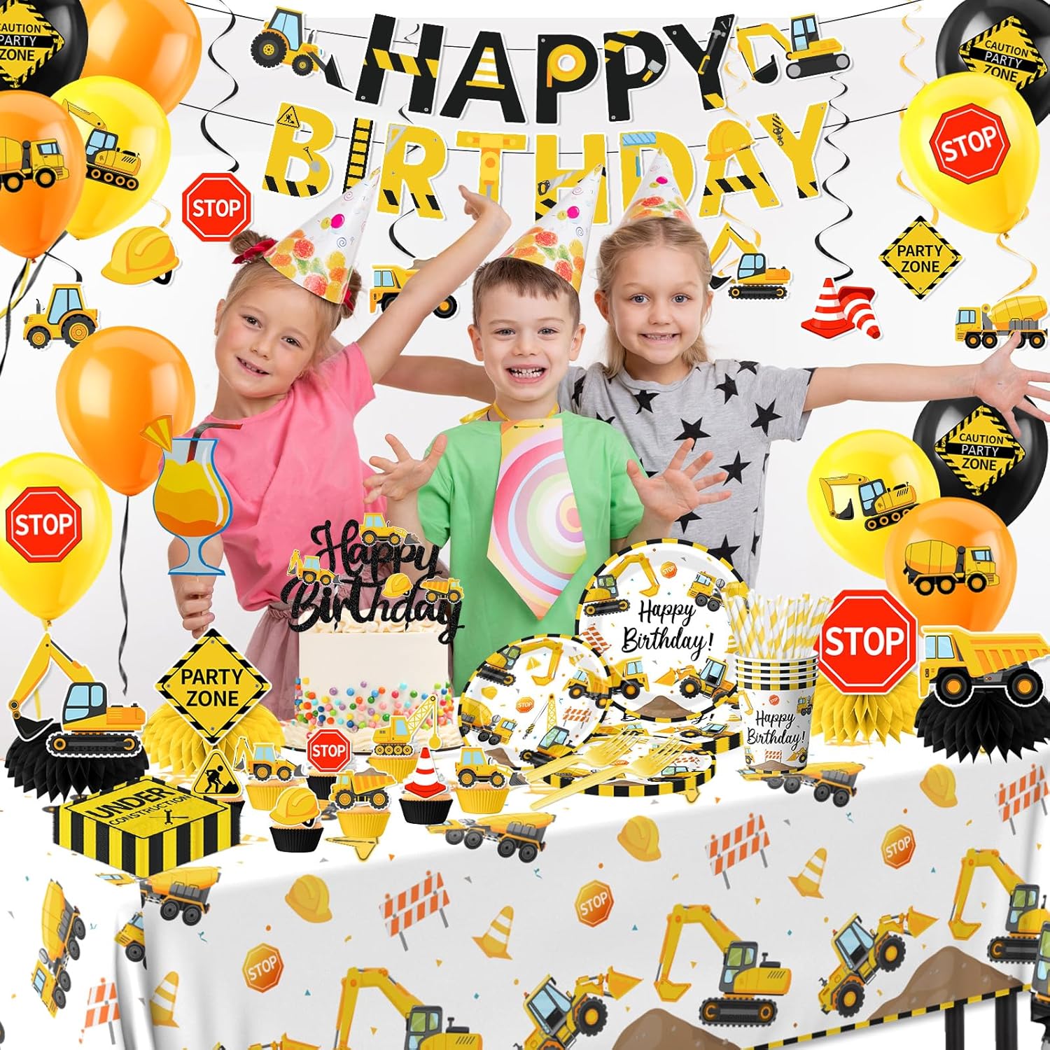 EXCAVATOR PARTY DECORATIONS:Versatile building celebration decorations excel for building birthday events,serving as building tablecloth,building party cupcake toppers and banners. Completely pair them with building autos for celebrations.Splendid for reunions,tenting, mall occasions,picnics,and indoor gatherings.Reusable for anniversaries or holidays!