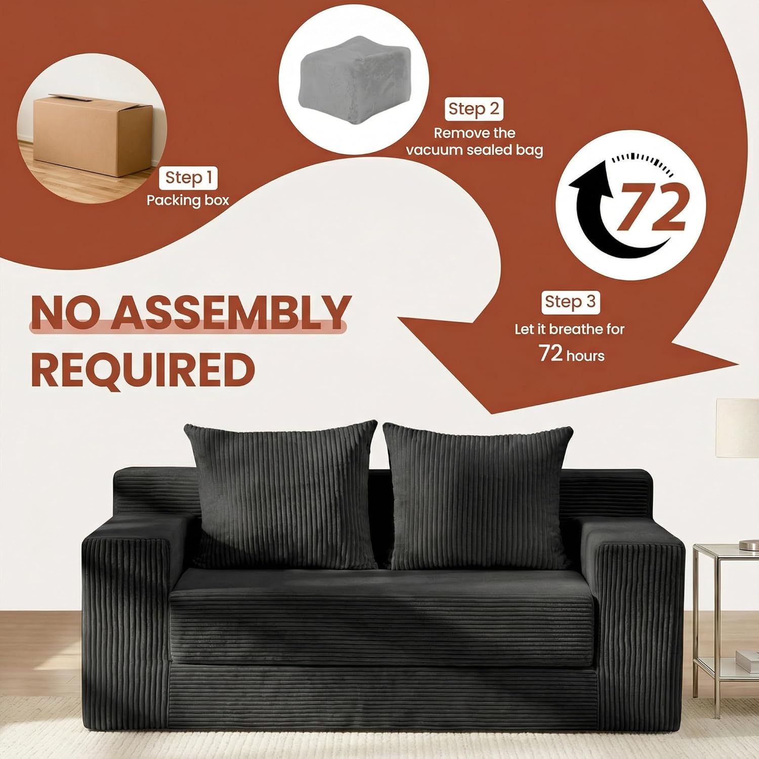 No Assembly Required : This foldable sofa bed ships compressed in a box for easy delivery. Simply unbox, place it in your desired spot, and allow 72 hours for the foam to fully expand and regain its plush shape. Lightly patting the cushions speeds up recovery. No confusing instructions, no tools needed—your perfect relaxation spot is ready in moments.