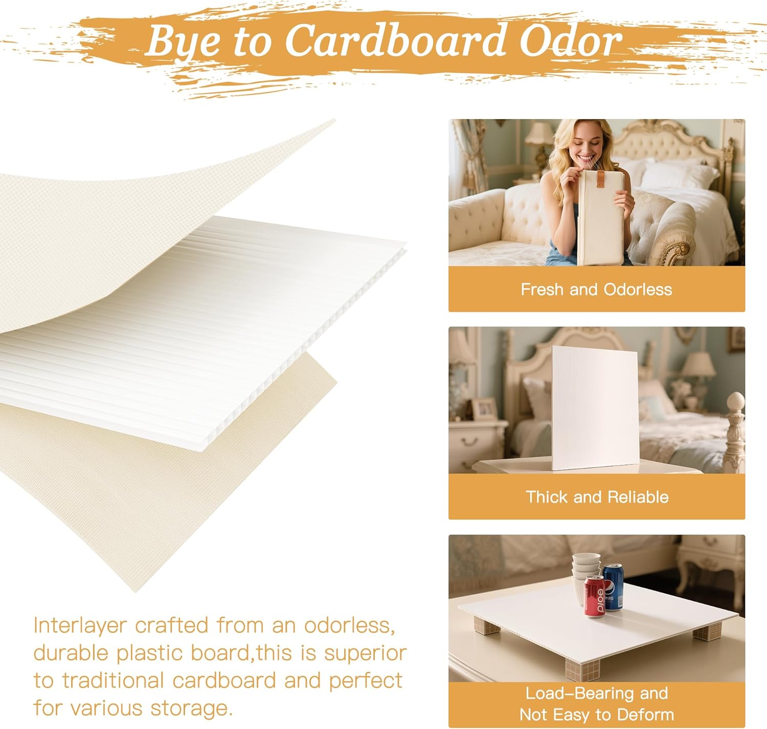 Made with thick, odorless 800G PP panels that present heavy-duty help and resist sagging over time.