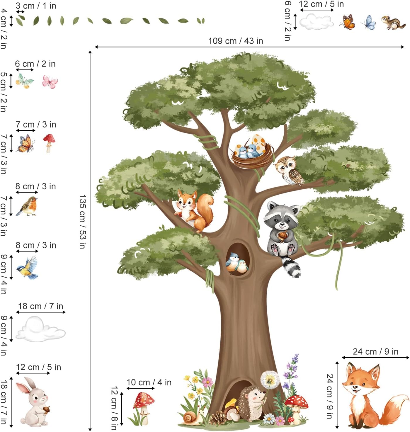 decalmile Woodland Animals Large Tree Wall Stickers Forest