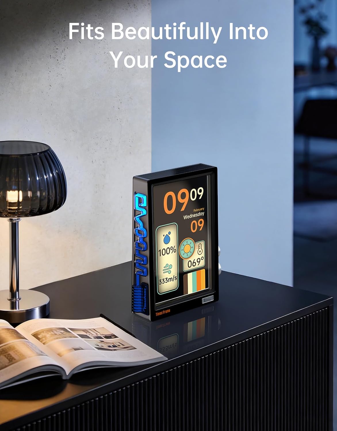 What sets the TimesFrame apart is its floating transparent screen, which gives images and videos a crisp, elevated appearance that stands out from traditional photo frames. Combined with built-in 64GB storage and support for AI-generated art styles, it offers a dynamic way to present visual content—whether personal memories or curated collections. The included live widgets for weather, calendar, and time add everyday utility, making it more than just a display—it becomes part of your daily routine.