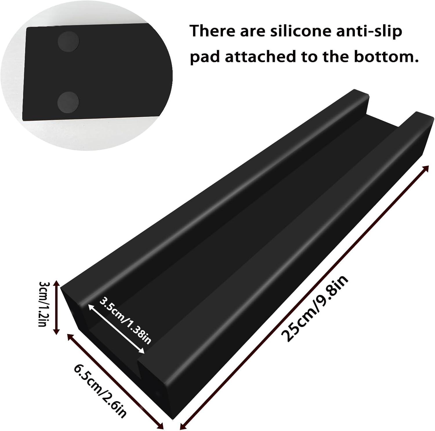 This can be a multifunctional anti-slip bracket, which might successfully stop slipping and is appropriate for: mirrors, picture frames, billboards, and many others. Dimension: L9.85W2.5H1.2in Groove dimension: L9.85W1.4H0.6in Colour: Black