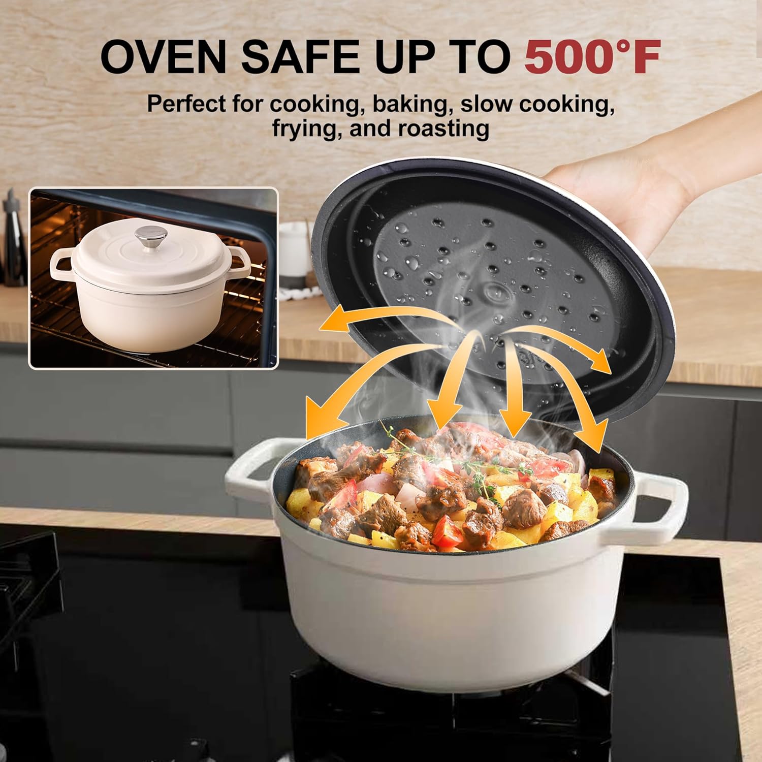 Superior Warmth Retention: Elevate your cooking with the Greatrue Dutch Oven. Created from heavy-duty forged iron, it ensures even warmth distribution and wonderful warmth retention—ultimate for gradual cooking, braising, and stewing. In contrast to skinny, uneven pots that scorch meals, this professional-grade enameled forged iron Dutch oven holds regular temperatures for good outcomes each time.