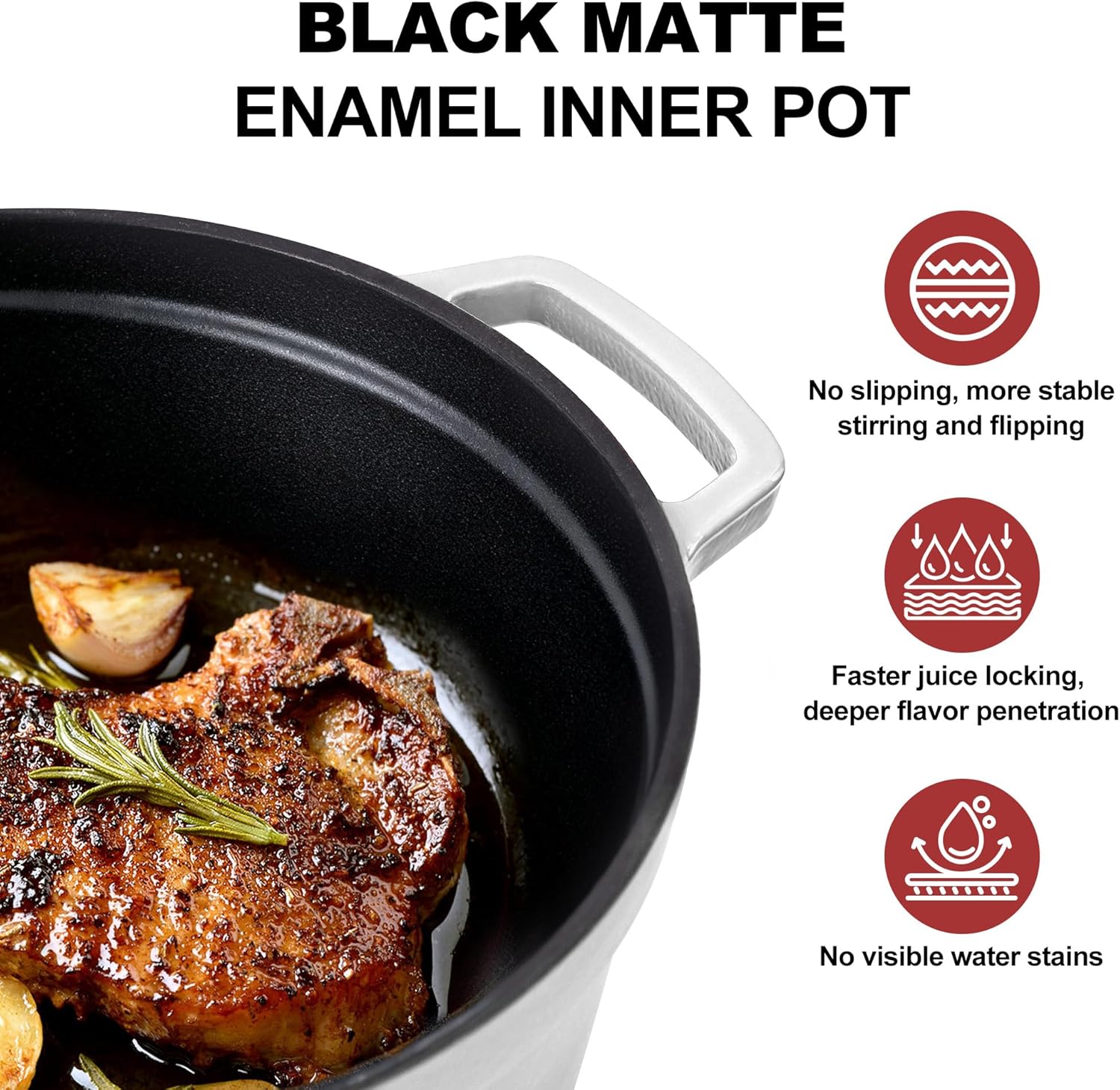 Made to Endure: Constructed with high-quality forged iron and a triple-layer enamel coating, this Dutch oven includes a food-grade black enamel inside designed to stop chipping and put on, guaranteeing long-lasting sturdiness.