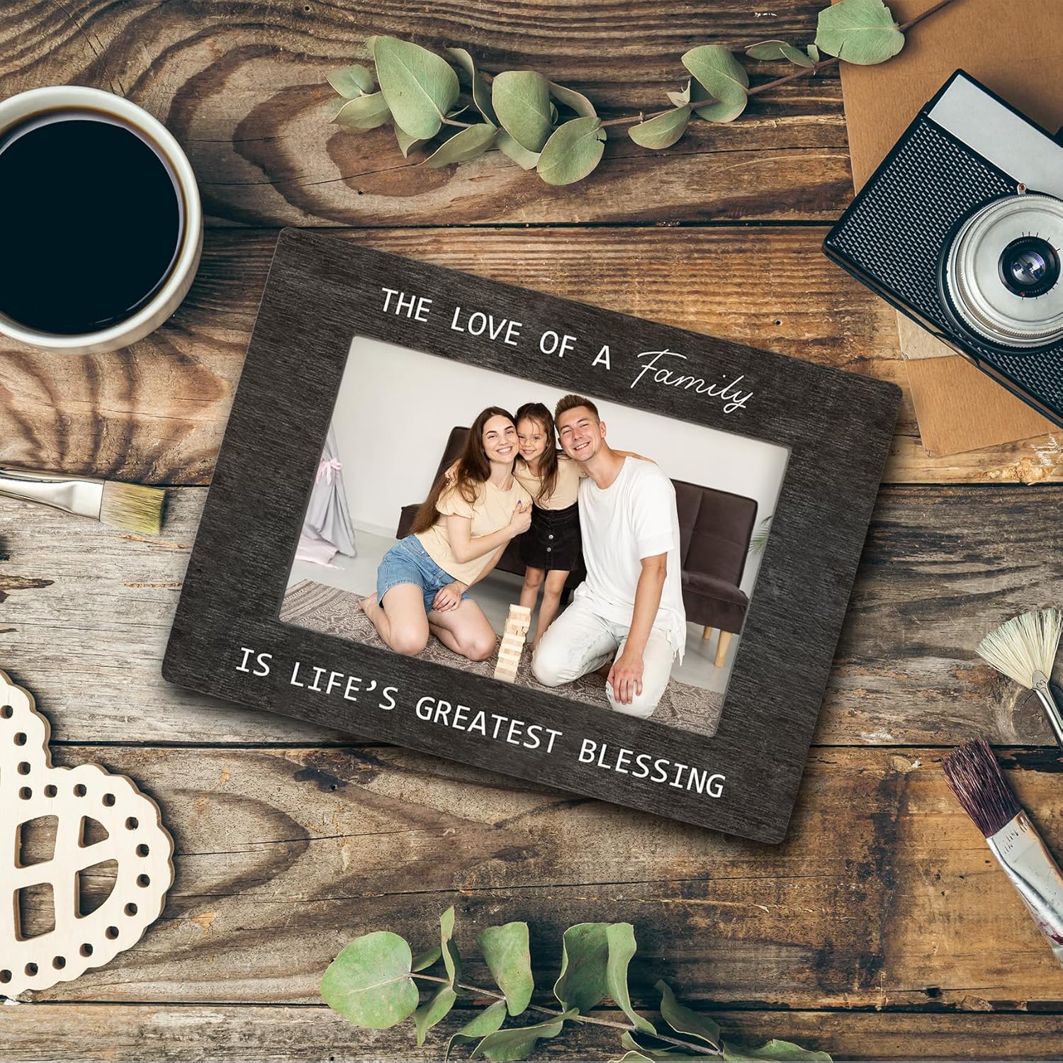 The image body measures 8×5.8 inches and may maintain 4×6 inches of pictures. The photograph body is printed with significant content material and designs, making it content material for displaying your cherished reminiscences. It may be positioned on the desk or wherever you need.