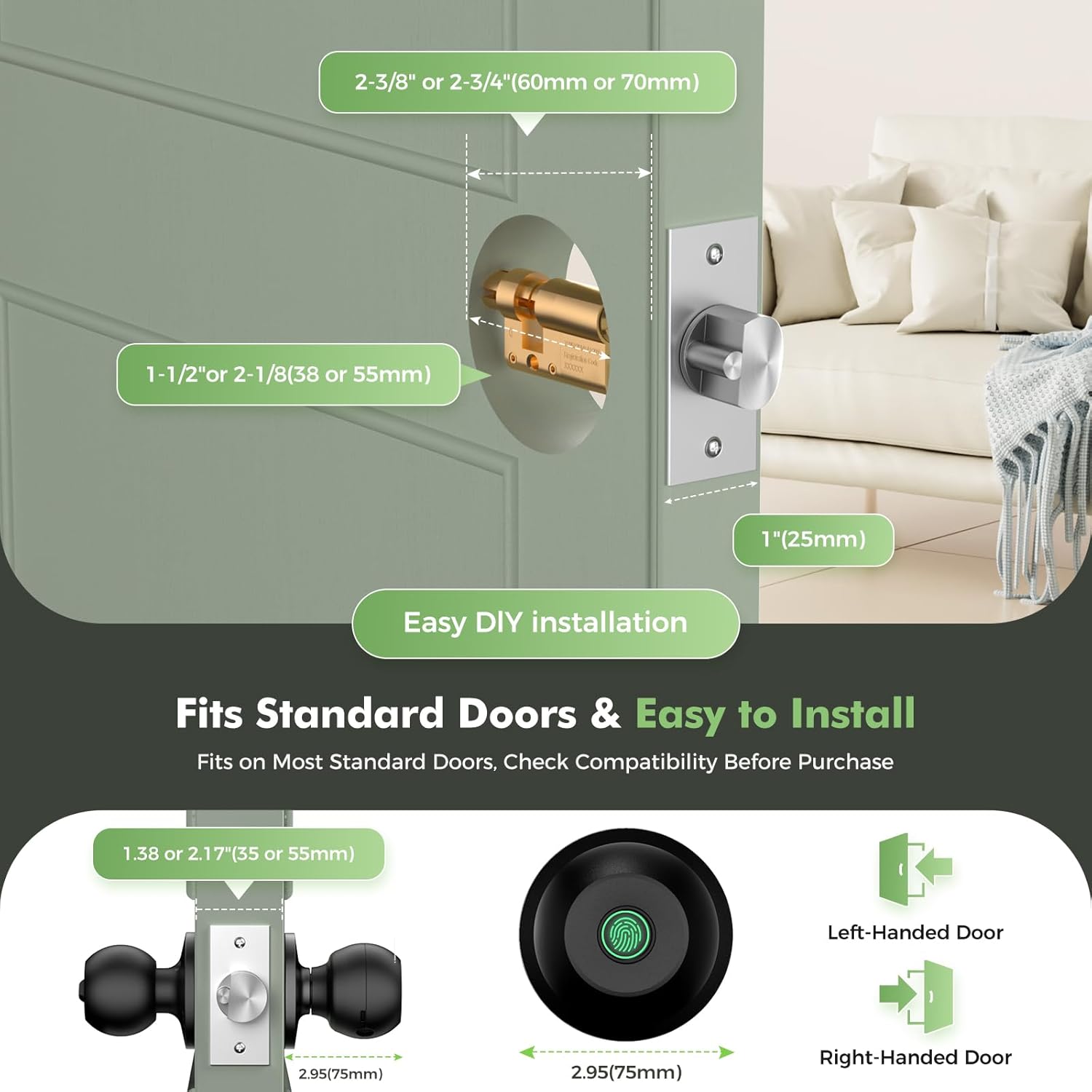【3-in-1 Good Entry】Our Good Door Knob supplies fingerprint recognition (0.5s quick unlock), encrypted app management through WiFi/Bluetooth, and a hidden mechanical keyhole – triple safety layers adapt to your life-style whereas sustaining 24/7 residence safety.