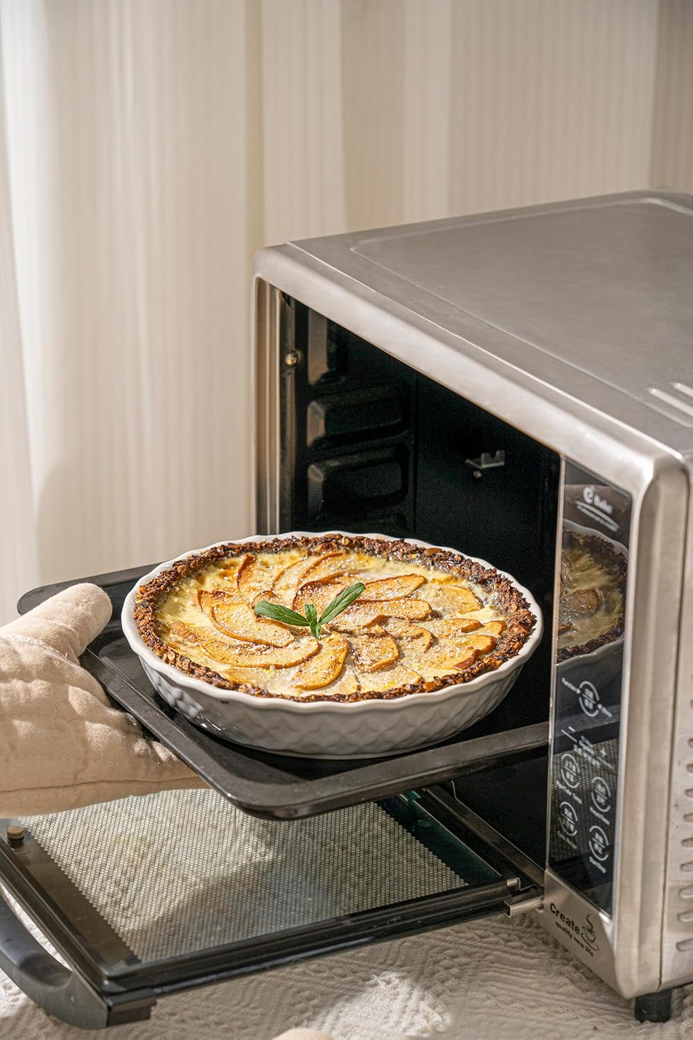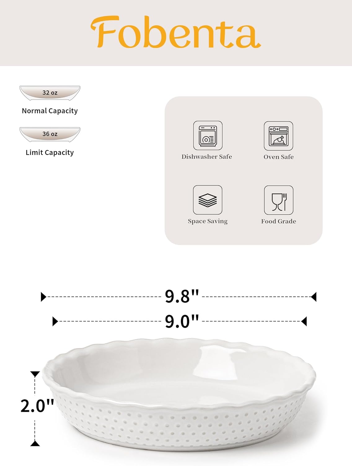 The FOBENTA Ceramic Pie Dish Set of 2 brings both elegance and practicality to your baking routine. Crafted from high-quality ceramic, this set features two beautifully designed dishes—one with an embossed floral pattern and the other accented by a delicate dotted texture. Each dish measures 9 inches in diameter and holds up to 36 ounces, making them ideal for standard-sized pies, tarts, quiches, or savory casseroles. Whether you’re preparing a classic apple pie for family dinner or hosting a holiday gathering, these dishes deliver consistent performance with their durable construction and timeless aesthetic.