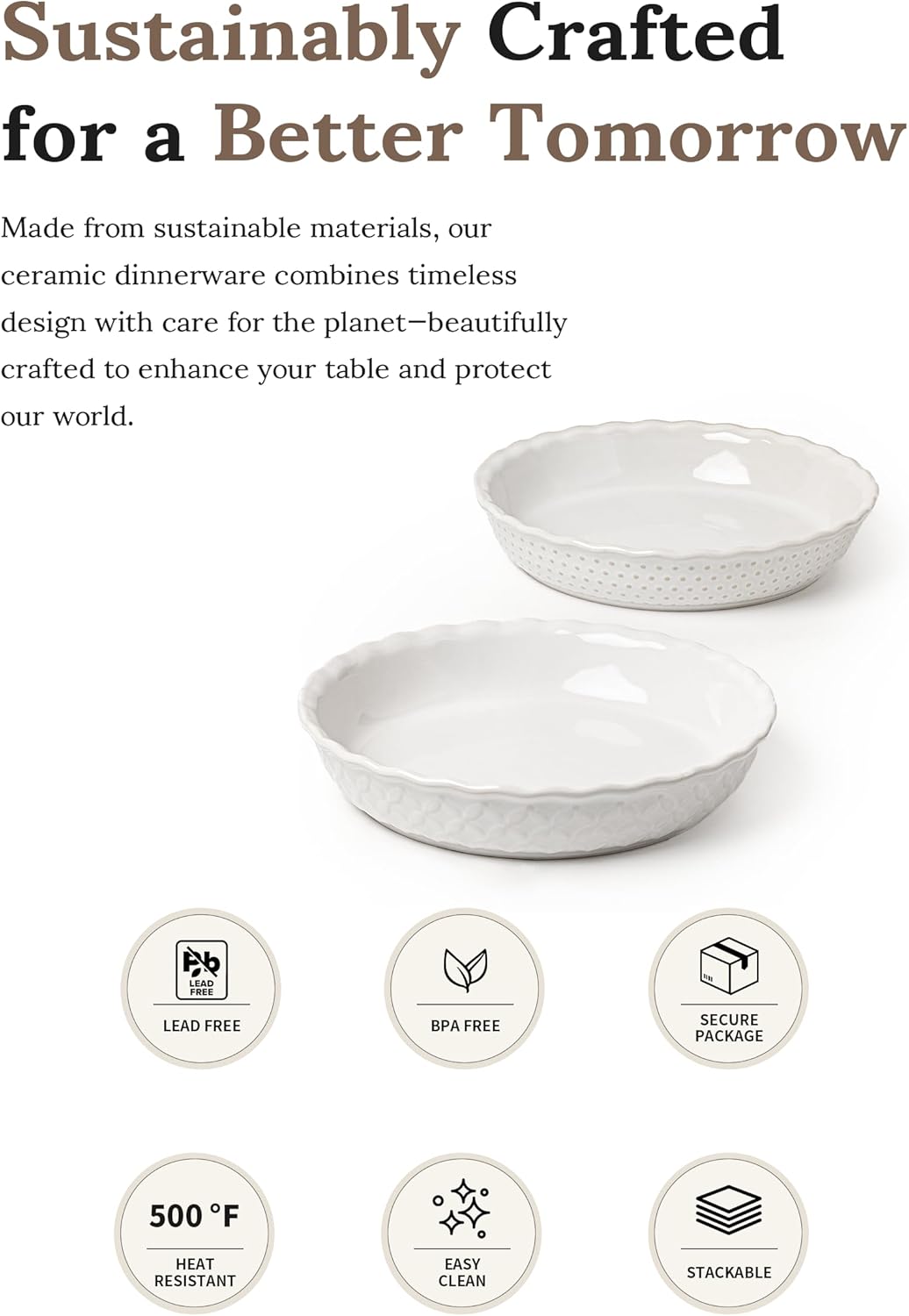 - Package contents: Two (2) ceramic pie dishes only. For warranty or support inquiries, refer to the included documentation or contact customer service via the provided link.