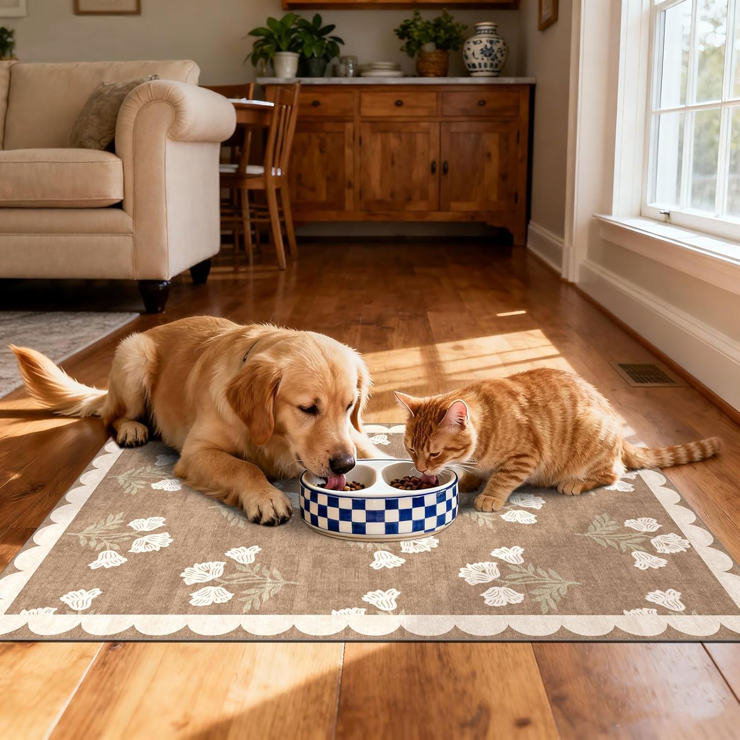 This charming front door mat combines timeless style with everyday practicality, making it a perfect addition to your entryway, porch, or kitchen doorway. Designed with a delicate cottage floral pattern featuring blossoms and leaves, this 2×3 doormat brings a touch of rustic elegance to any space. The soft scalloped edge adds a vintage-inspired finish that complements farmhouse, French country, and cottagecore decor themes, while the neutral tan color ensures seamless integration into both traditional and modern interiors.