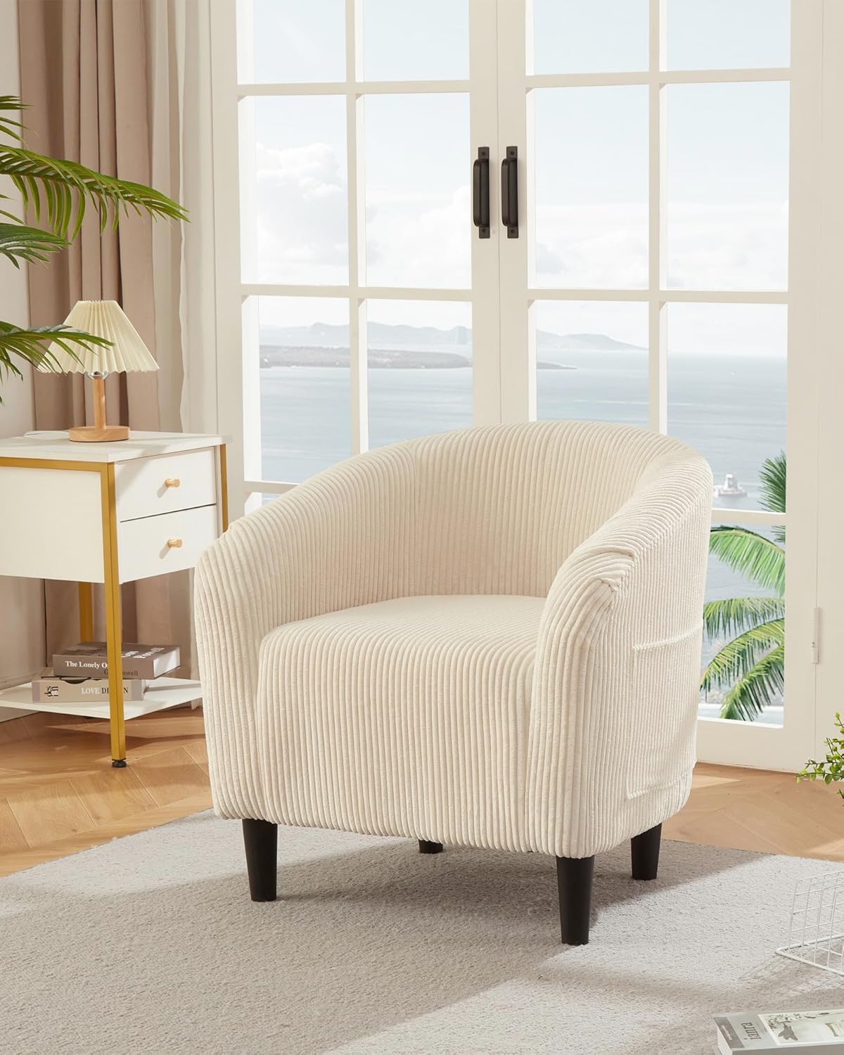 Be the first to review “GarveeHome Barrel Accent Chair Corduroy Club Chair Elegant Armchair Cozy Backrest for Living Room Bedroom Reception Room Office – Beige”