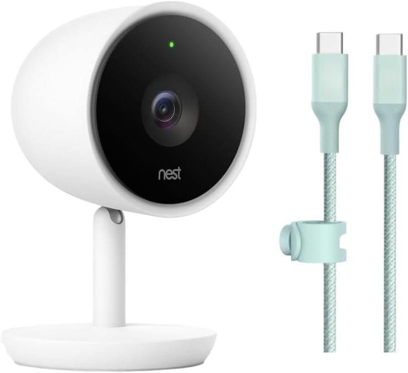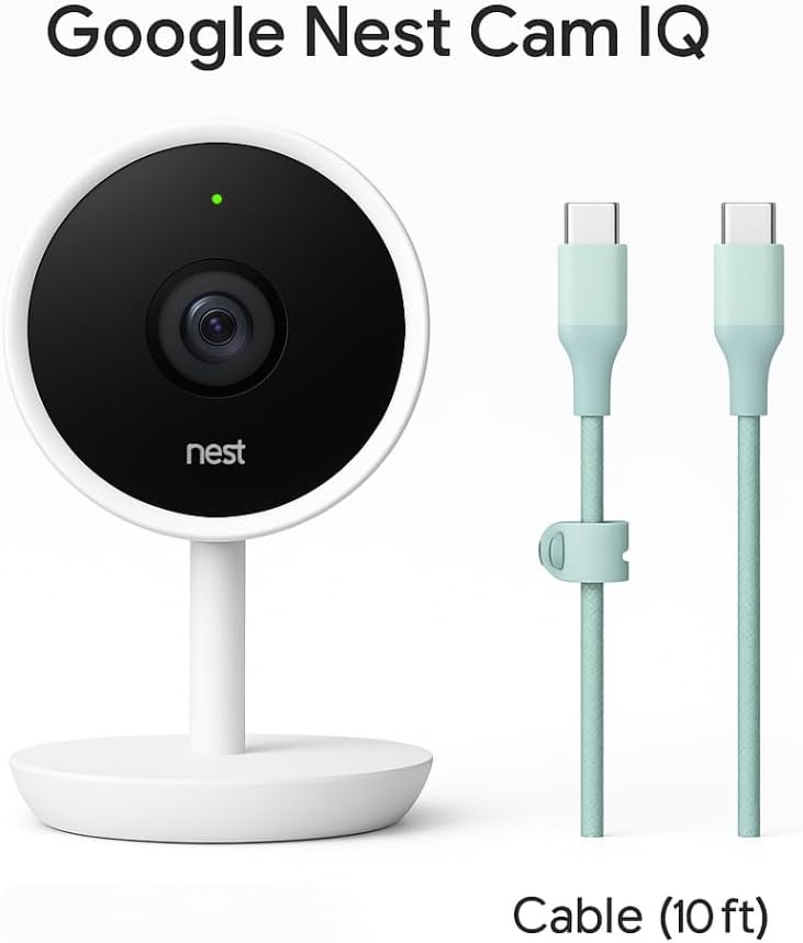 Substitute Digicam Solely – Contains Nest Cam IQ Indoor unit and 10 FT USB-C to USB-C cable.