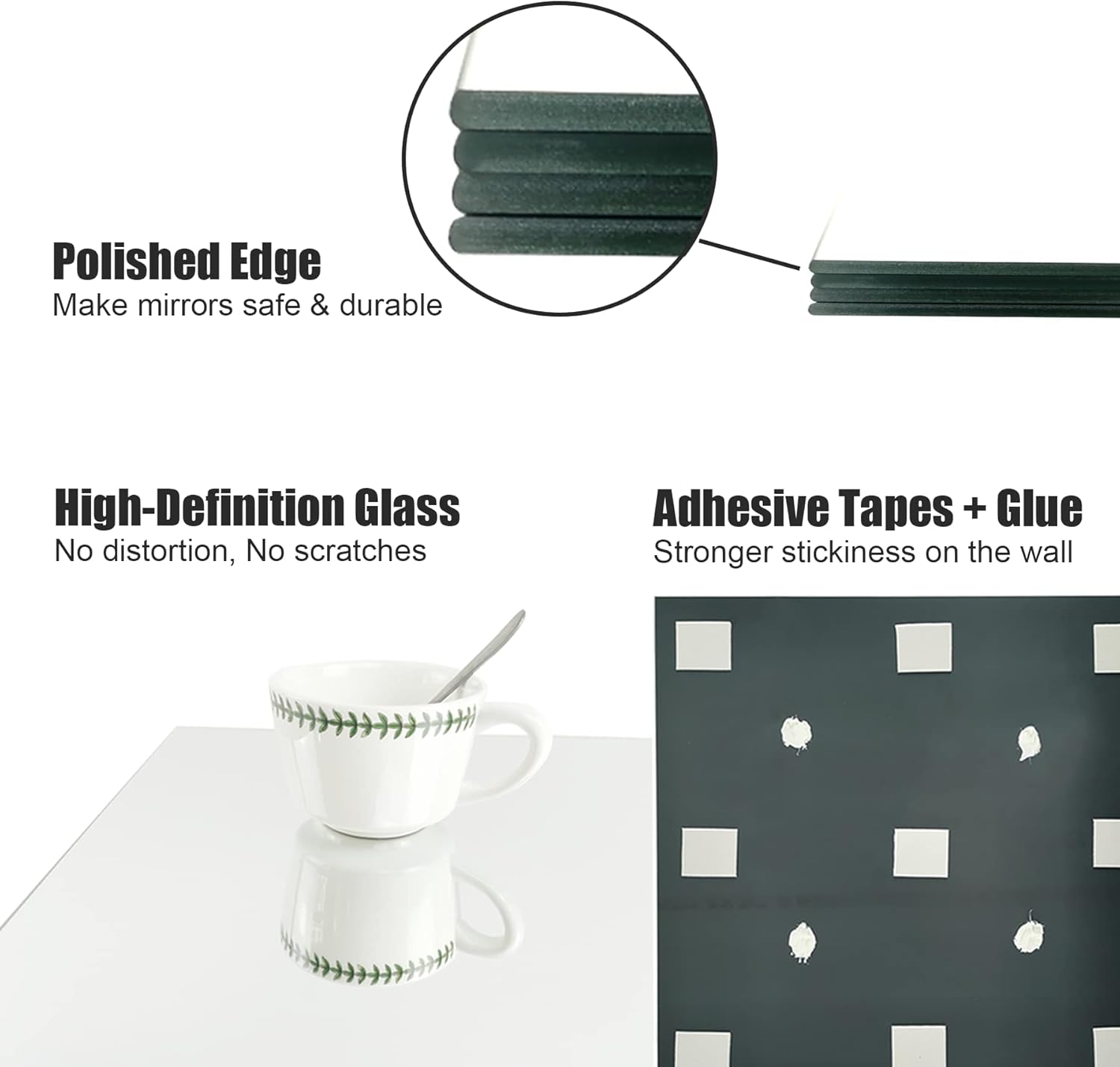 Mirror Measurement: Every mirror tile is 12 x 12 inches, whole 4PCS, which edge is superior polished, makes mirrors protected and resistant.