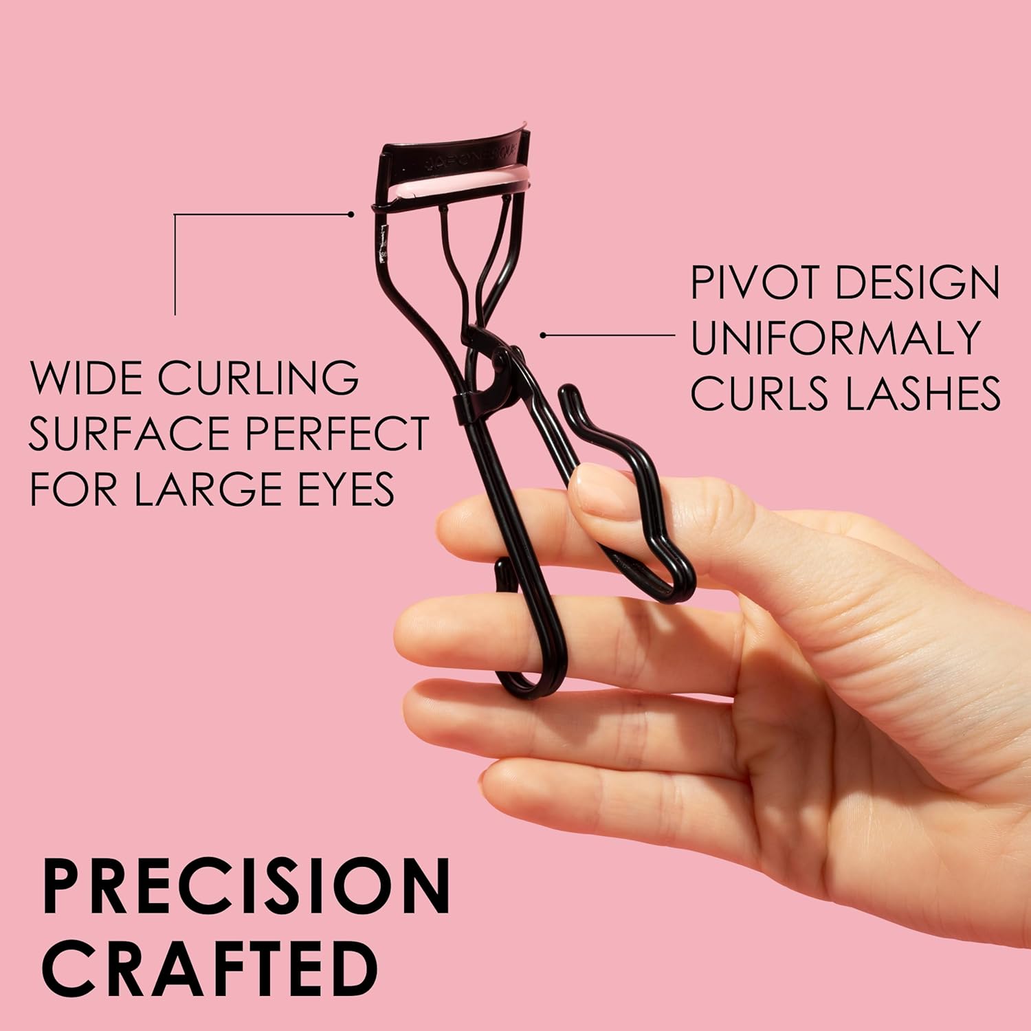 Wide curling surface fits larger eyes or long lash lines. Soft lash pad is gentle enough for both natural & false lashes.