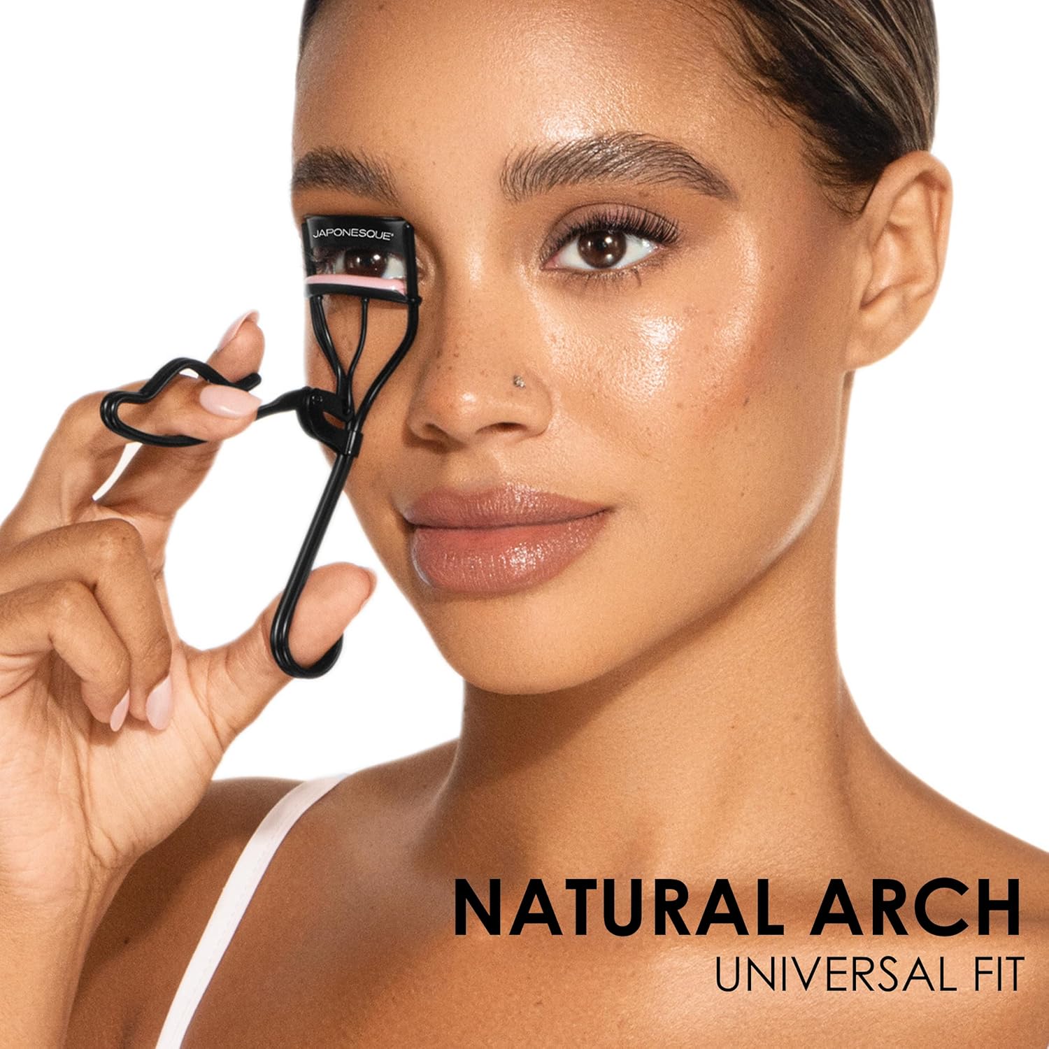 JAPONESQUE Professional Volumizing Lash Curler for Natural & False Lashes on Most Eye Shapes and Large Eyes, 1 Refill Pad, Holds Curl up to 8 Hours