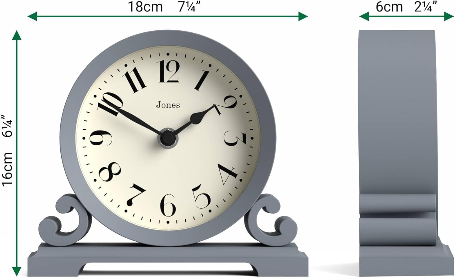 The JONES CLOCKS® Saloon Mantel Clock is a refined blend of traditional design and modern craftsmanship, crafted exclusively for those who appreciate classic elegance with contemporary appeal. Designed and made by Jones Clocks, this mantel clock features a small, compact size that fits seamlessly on desks, shelves, bedside tables, or mantelpieces. Its French Navy acrylic finish offers a sophisticated matt texture, while the clear glass lens beautifully showcases an Arabic numeral dial for easy time reading.