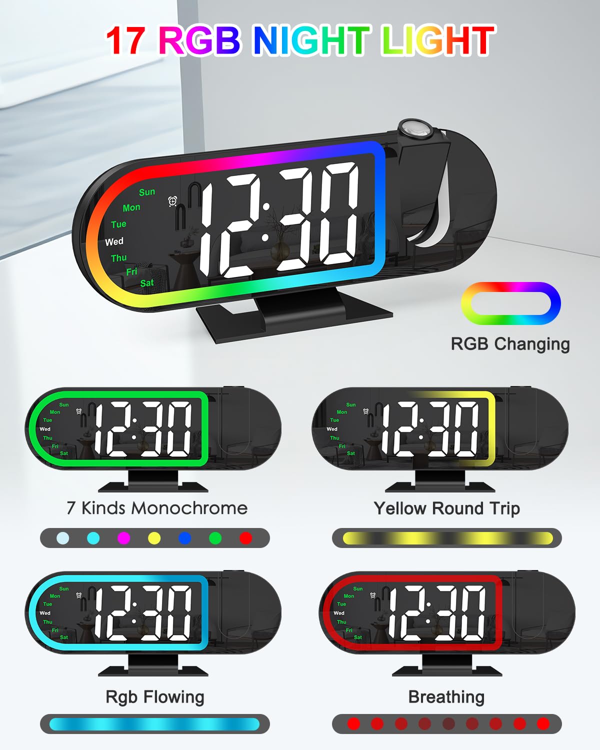 17 Ambient Lighting Modes: This digital alarm clock features a sleek round ambient light design with 17 ambient lighting Modes to create the perfect atmosphere. It can be used as a night light or decorative lighting, adding a modern touch to any space, ideal for both adults and kids.