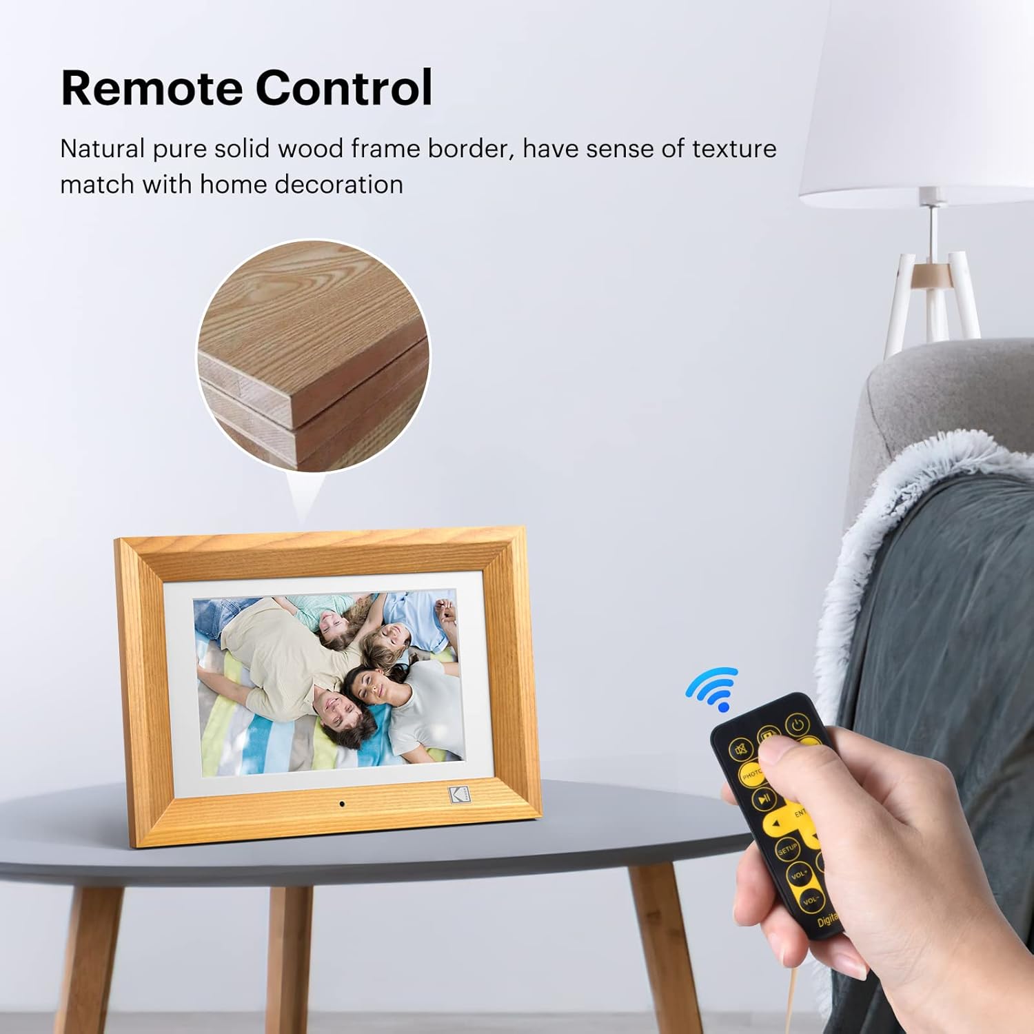 KODAK 10.1 Inch Wood Digital Picture Frame with Remote Control, IPS Screen HD Display, Auto-Rotate, Wall Mountable, Programmable Auto On/Off, Enjoy Your Precious Moment in Slideshow, Black
