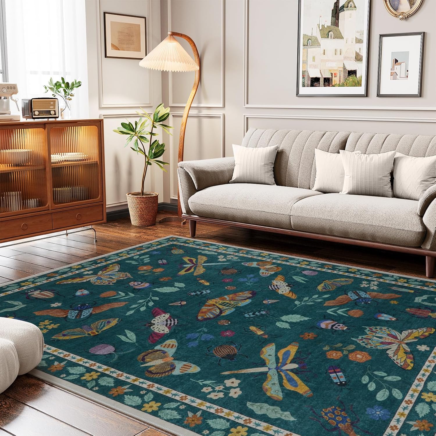 Stunning Insect Rug: This room rug combines insect and plant patterns to set the inspiration of your house with distinctive pure components and add a creative contact to any room. This rug is ultra-thin, permitting it to be simply positioned beneath furnishings