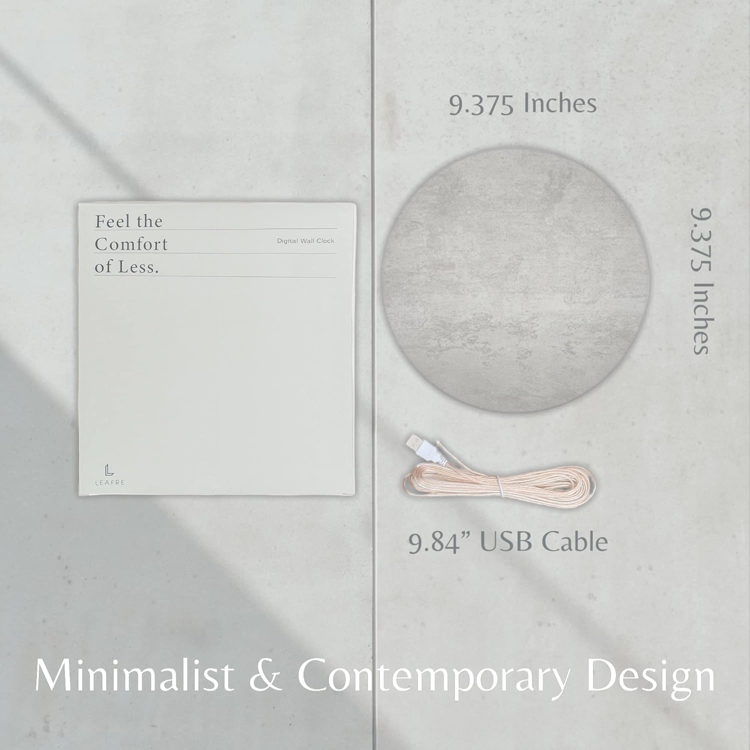 The Minimalist LED Digital Wall Clock is a sleek and functional timepiece designed for modern living spaces. With its understated grey concrete-style finish, this clock blends seamlessly into kitchens, living rooms, bedrooms, classrooms, and offices. Powered by a USB connection, it offers reliable timekeeping without the need for batteries. The clock features both 12-hour and 24-hour formats, a silent operation mode, and an optional night mode to reduce light disruption. Its refined design includes a hidden cable system and a stationary colon between numbers, ensuring a clean, non-blinking display that enhances readability and visual comfort.