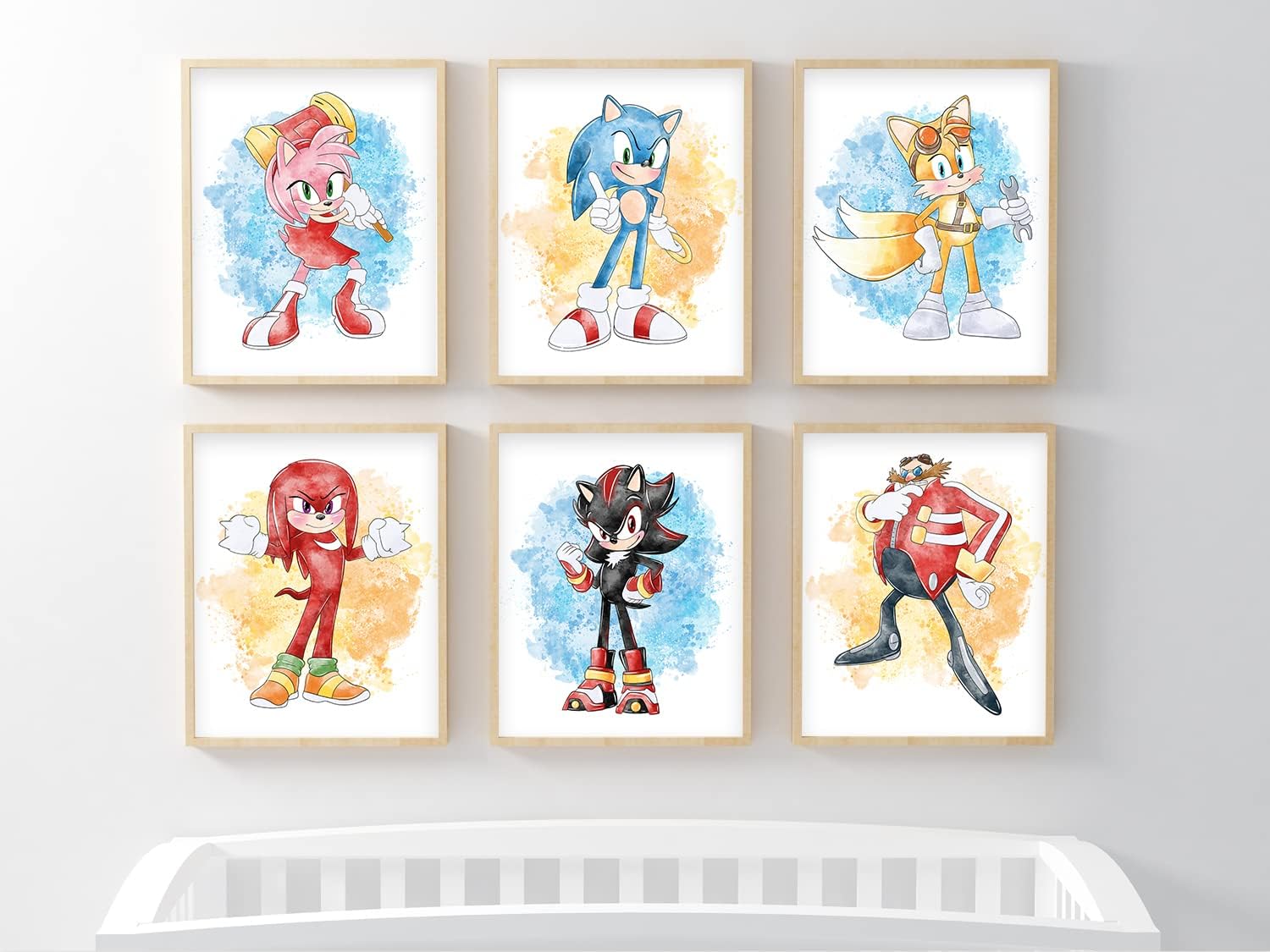 - Set of 6 Unframed Wall Art Prints: Includes six individual designs showcasing Sonic the Hedgehog and his companions, offering a cohesive themed collection perfect for building a complete wall display.