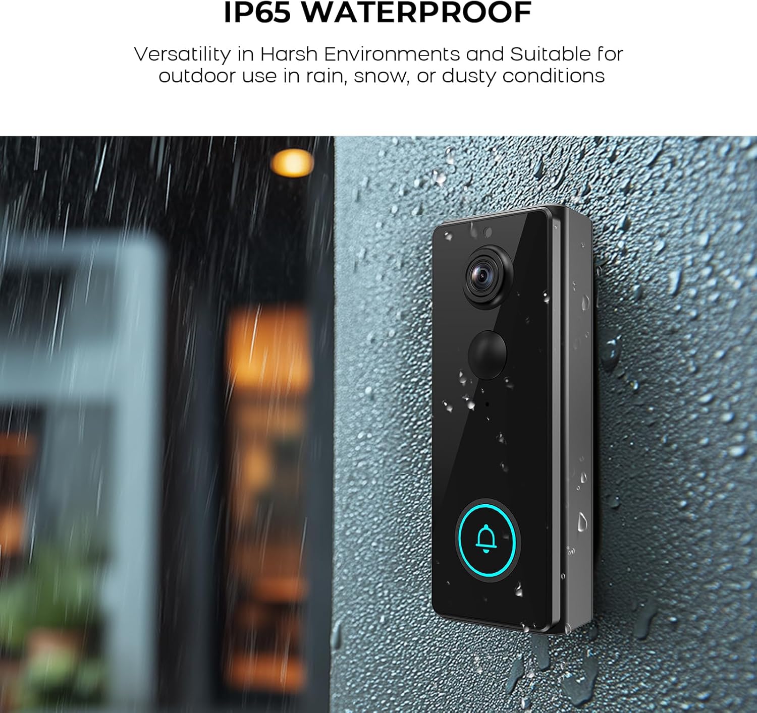 【Lengthy-Lasting Battery & Weatherproof Design】Constructed to face up to the weather, our doorbell is IP65 weatherproof, guaranteeing dependable efficiency in rain or shine. The rechargeable battery provides months of use on a single cost, and you may verify the battery standing through the app,no extra surprising outages.