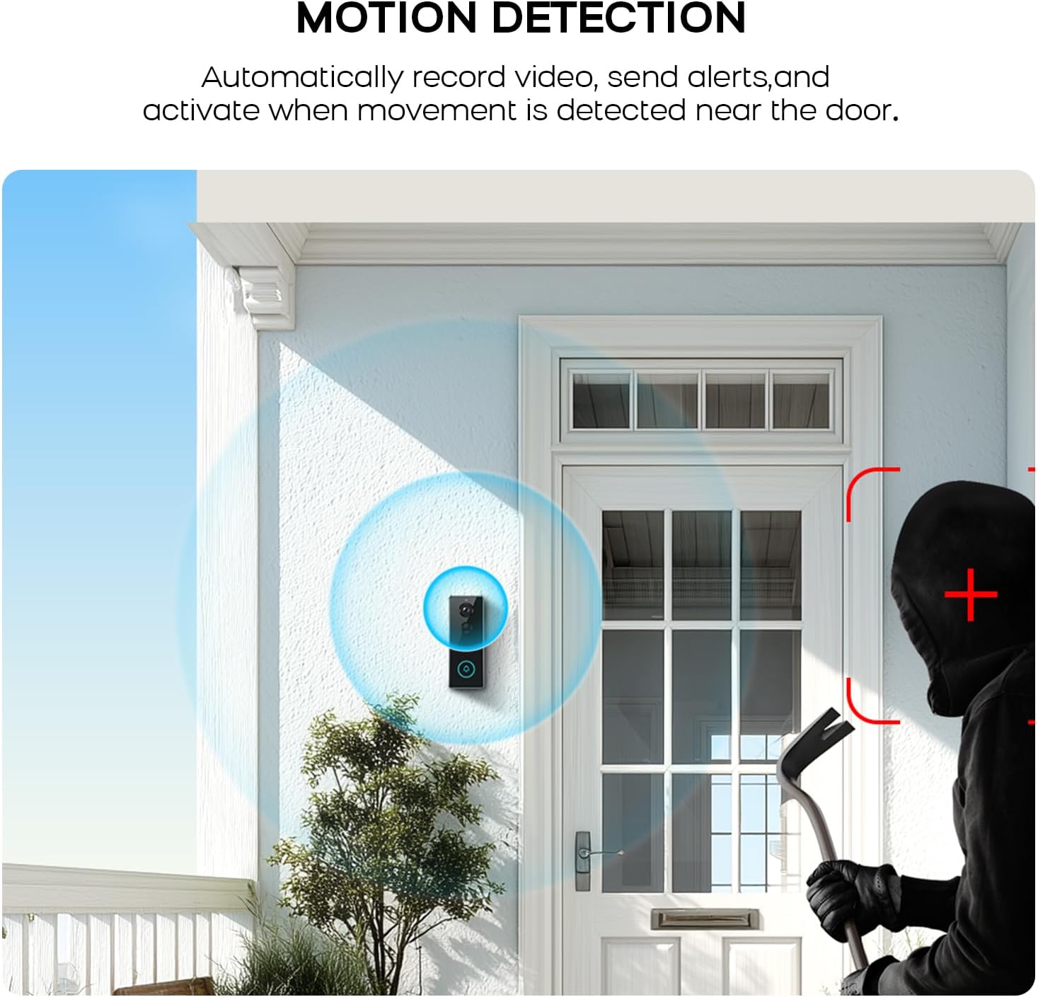 【HD Video & Clear Evening Imaginative and prescient】Improve your own home safety with our superior video doorbell and Take pleasure in crystal-clear 1080P reside streaming, guaranteeing you by no means miss a customer. Geared up with infrared night time imaginative and prescient, it gives sharp footage even in low-light circumstances, providing you with peace of thoughts day and night time.