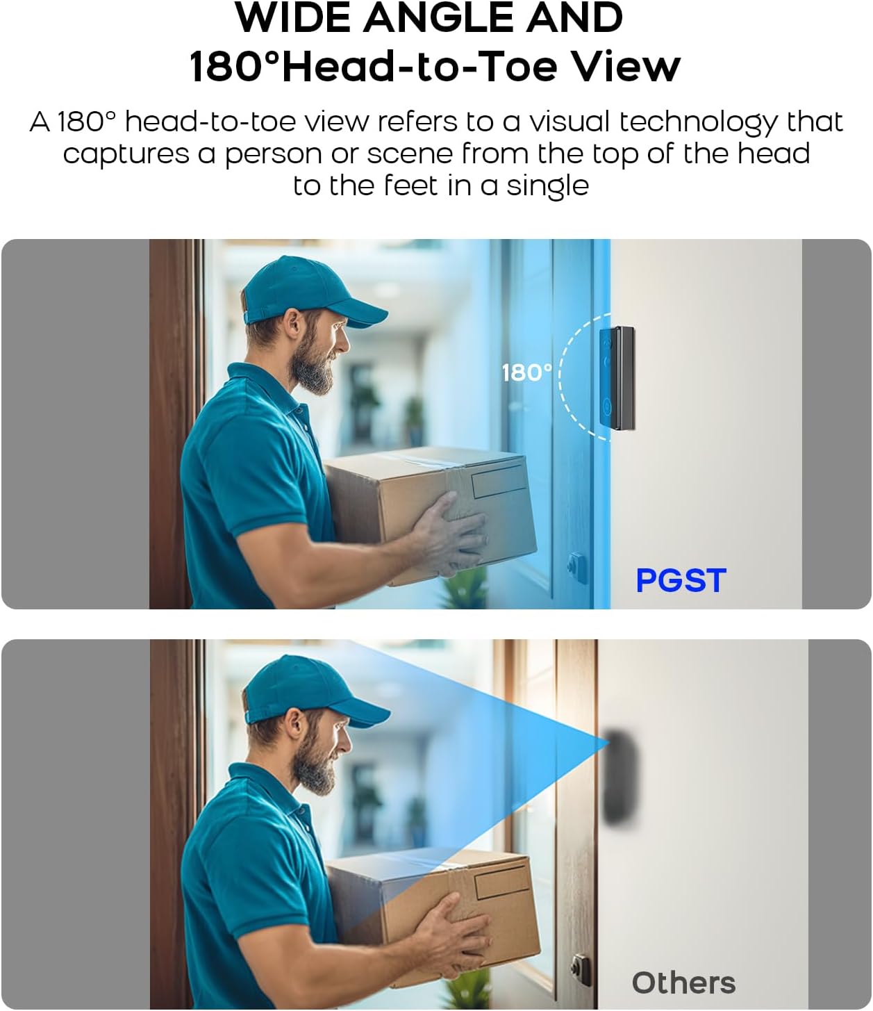 Be the first to review “PGST Wireless Video Doorbell,Battery-Powered Door Bell with 2K HD Security Camera,180° Head-to-Toe View,Two-Way Audio,Motion Detection and Instant Alerts,Night Vision”