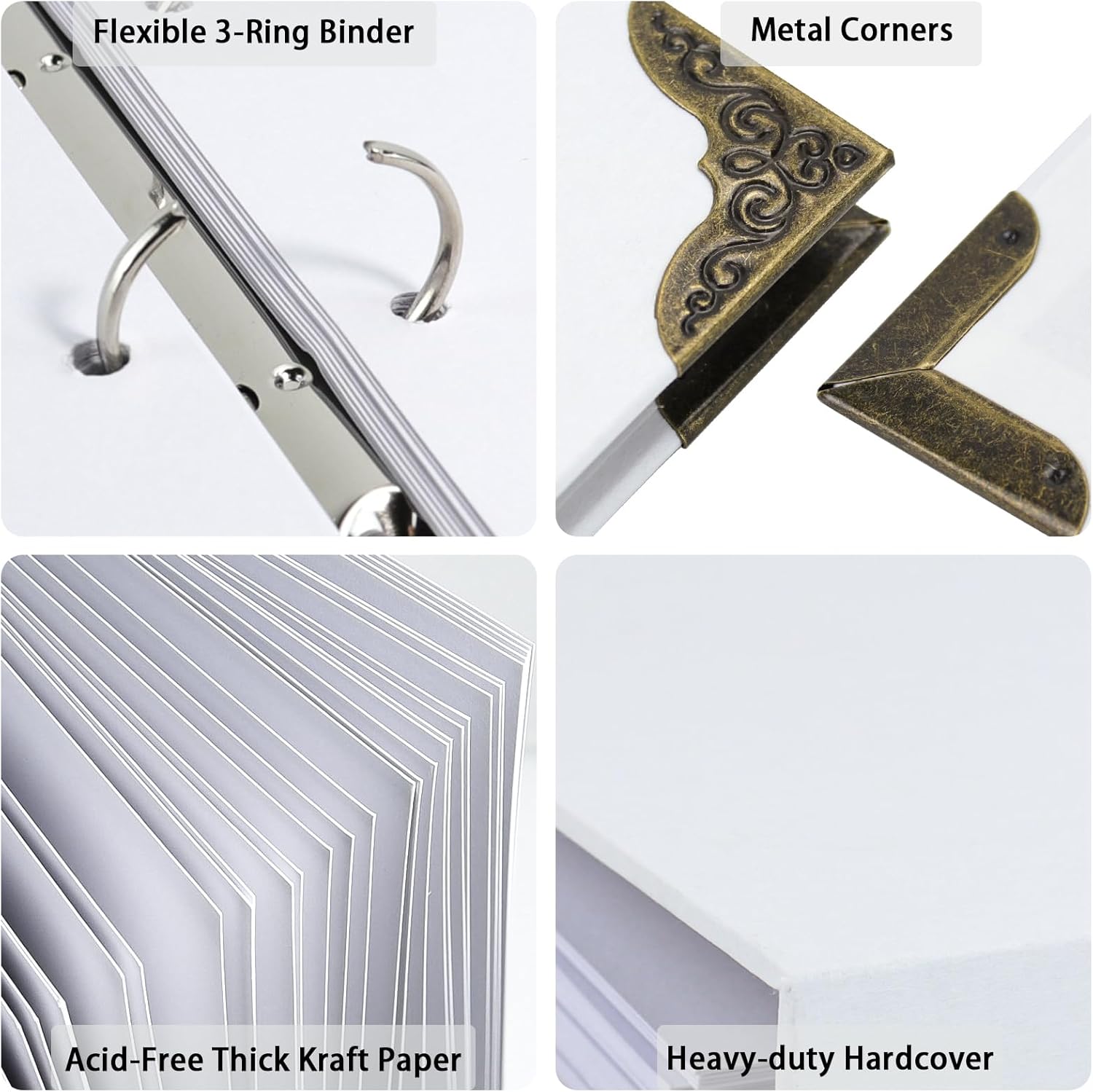 Scrapbook Album 8″ x 10″ DIY Scrapbook Photo Album Hardcover Kraft Paper 3 Rings Memory Book for Wedding, Anniversary, Travel, Family, White