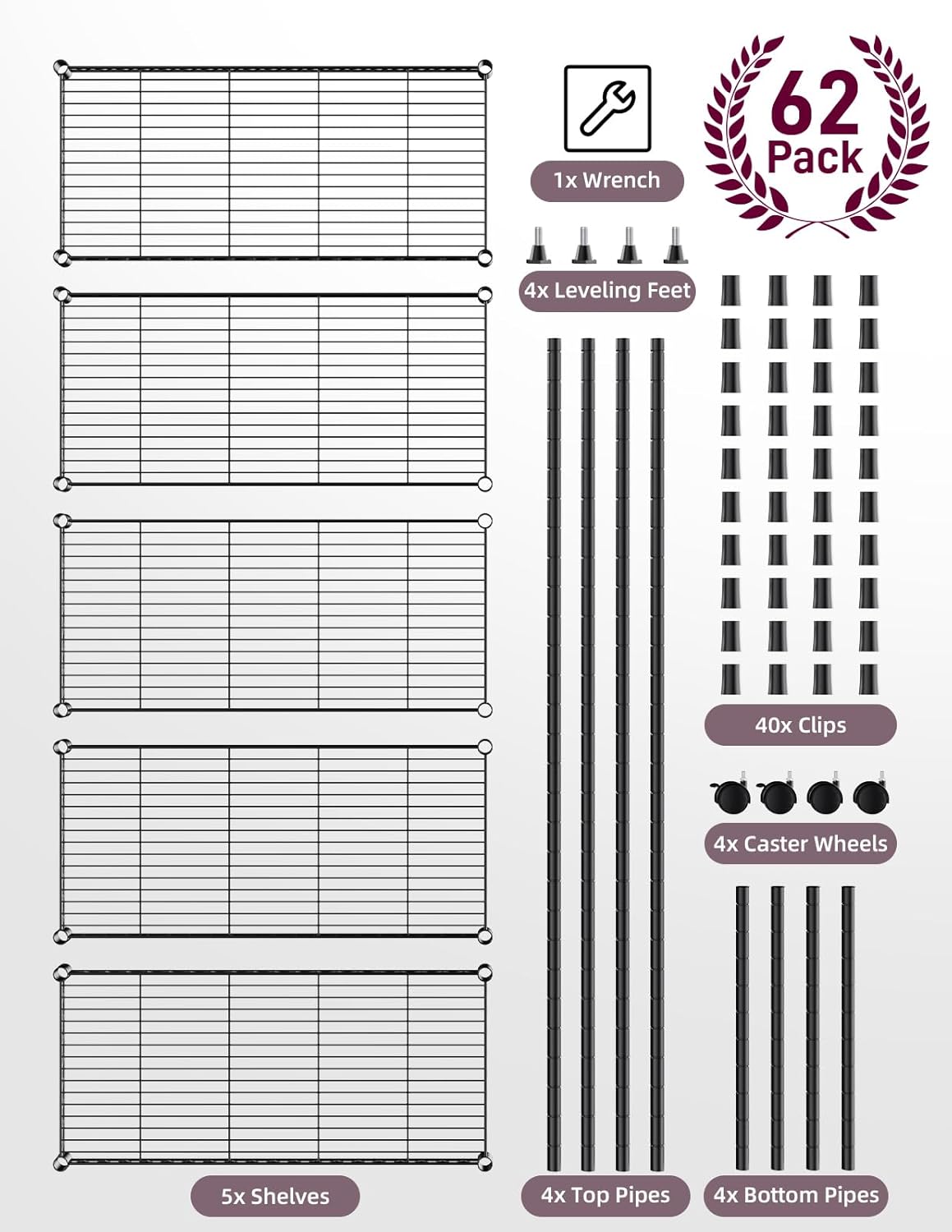 Be the first to review “Simple Deluxe Heavy Duty 5-Shelf Storage Shelving Unit, 1250lbs Loading Capacity, 29.92″ D x 13.98″ W x 61.09″ H, Black, 2 Pack”