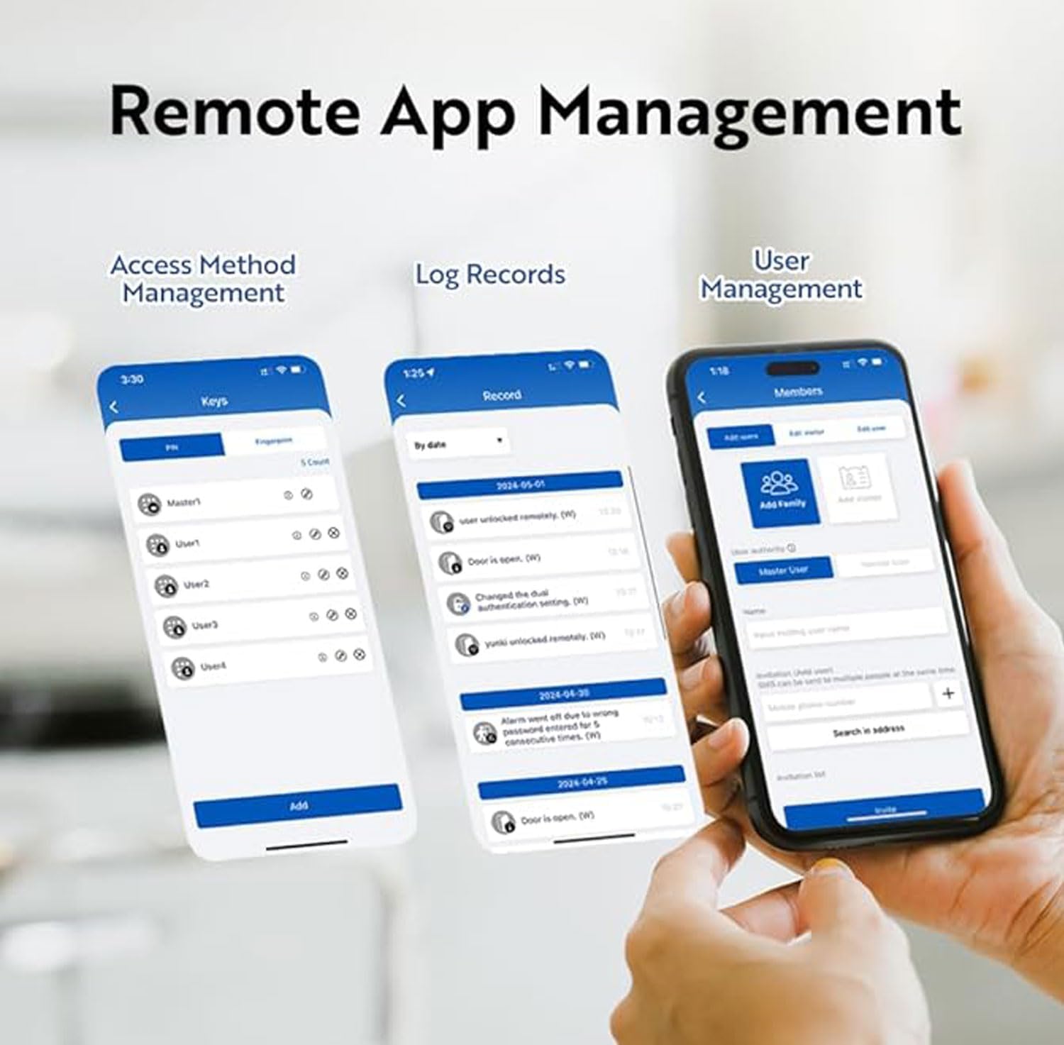 🚪 All-in-One Good Entry: Unlock your door keylessly through fingerprint, passcode, IC card, key fob, or bodily key—good for households and friends.