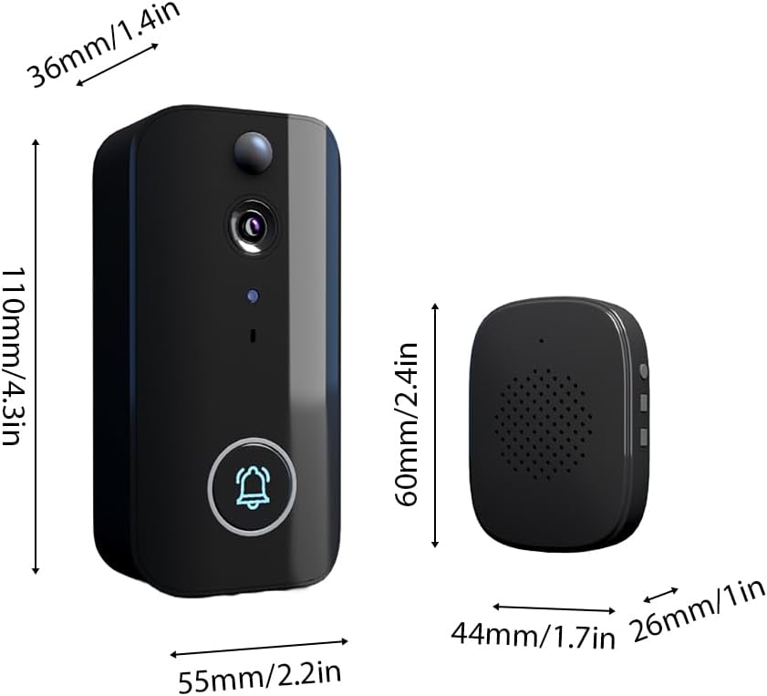 Doorbell Measurement: 110 * 55 * 36mm/4.3 * 2.2 * 1.4inch